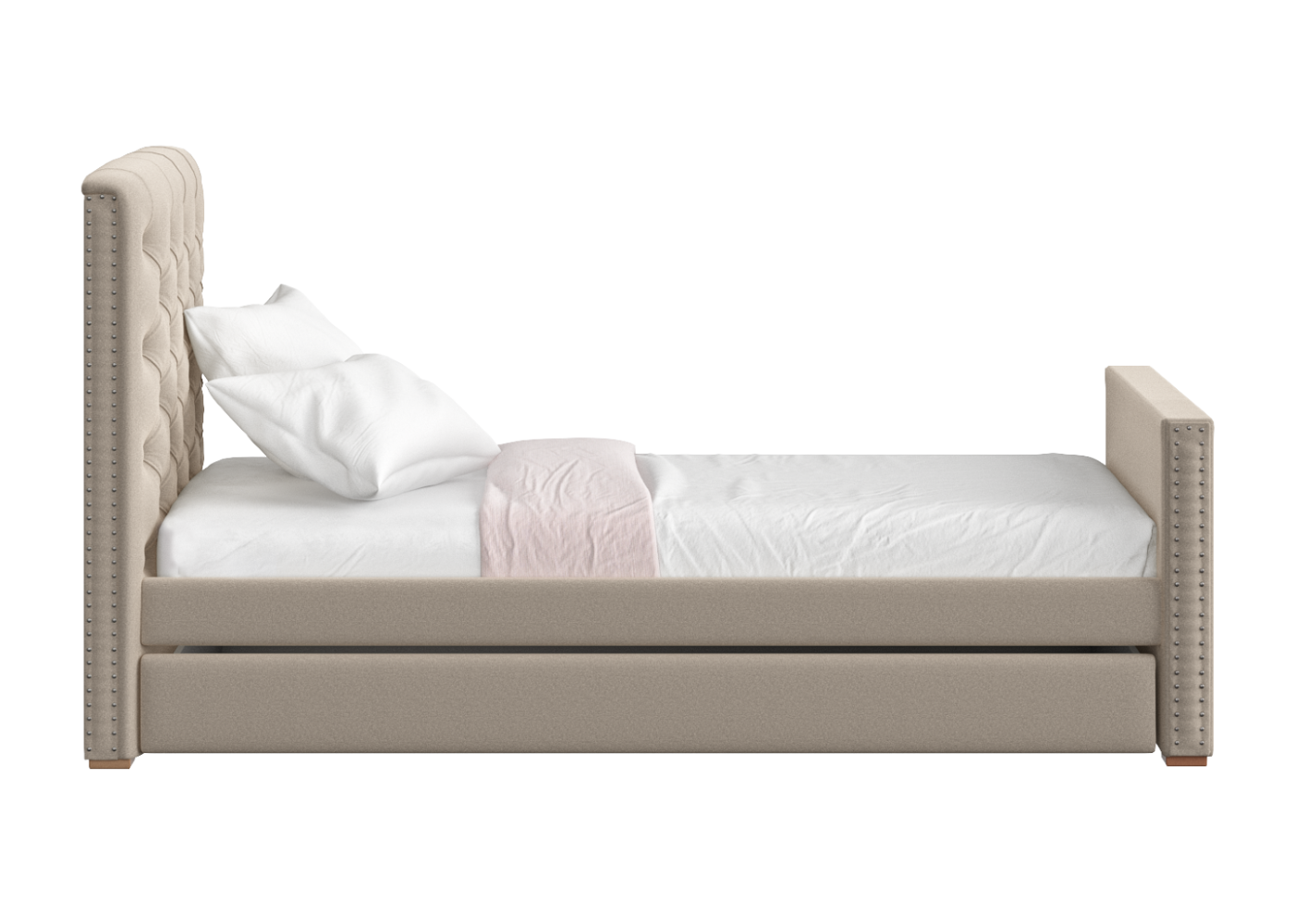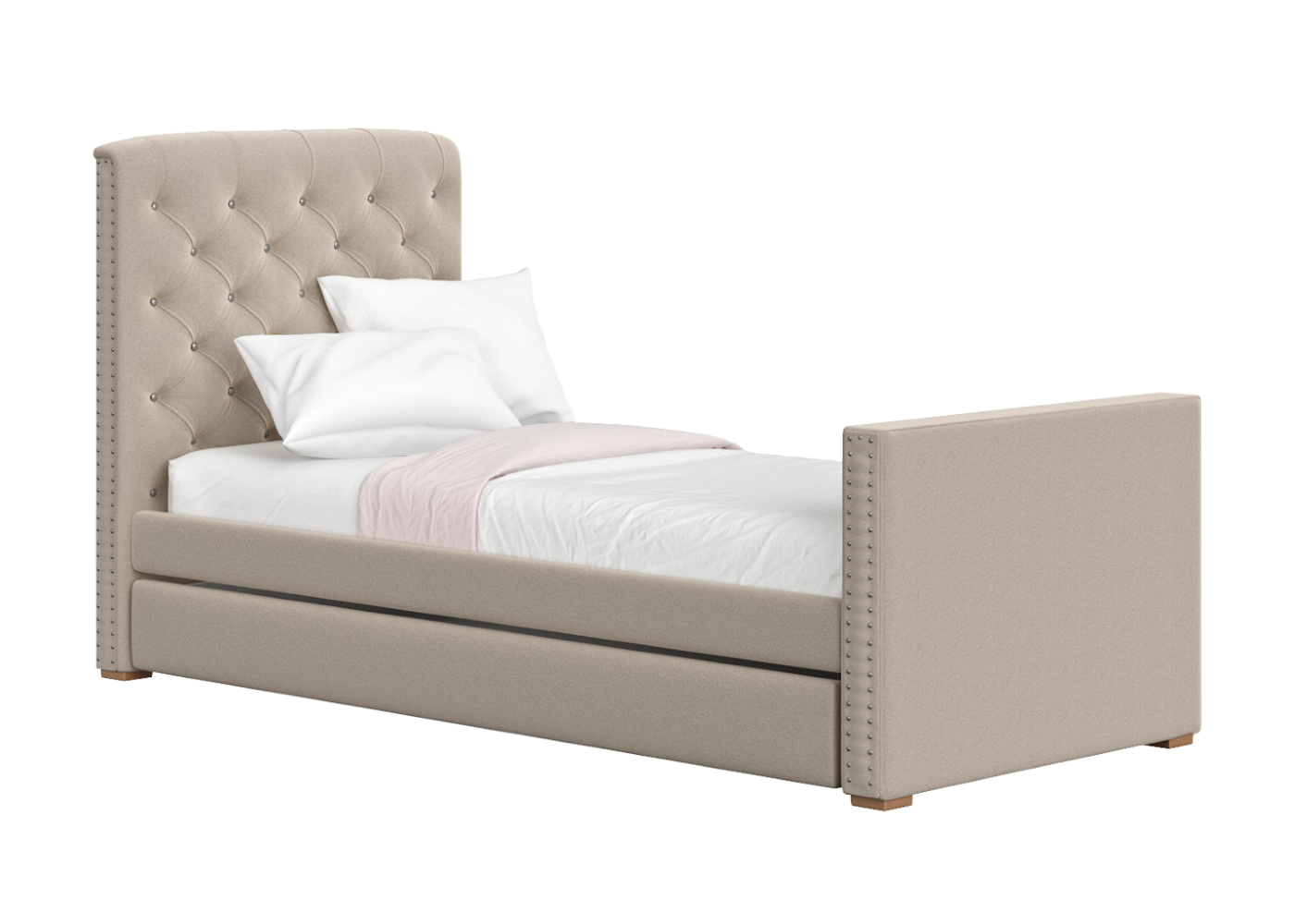 Мягкая уютная кровать Elit soft с каретной стяжкой на изголовье может быть выполнена в различных цветах: бежевый, серый, розовый или голубой Кровать имеет просторное спальное место 90*200 см В комплект входит вместительный ящик для хранения постельных принадлежностей или игрушек. Дополнительно можно заказать защитные бортики. Материал: бук, береза Обивка: ткань микрошенилл