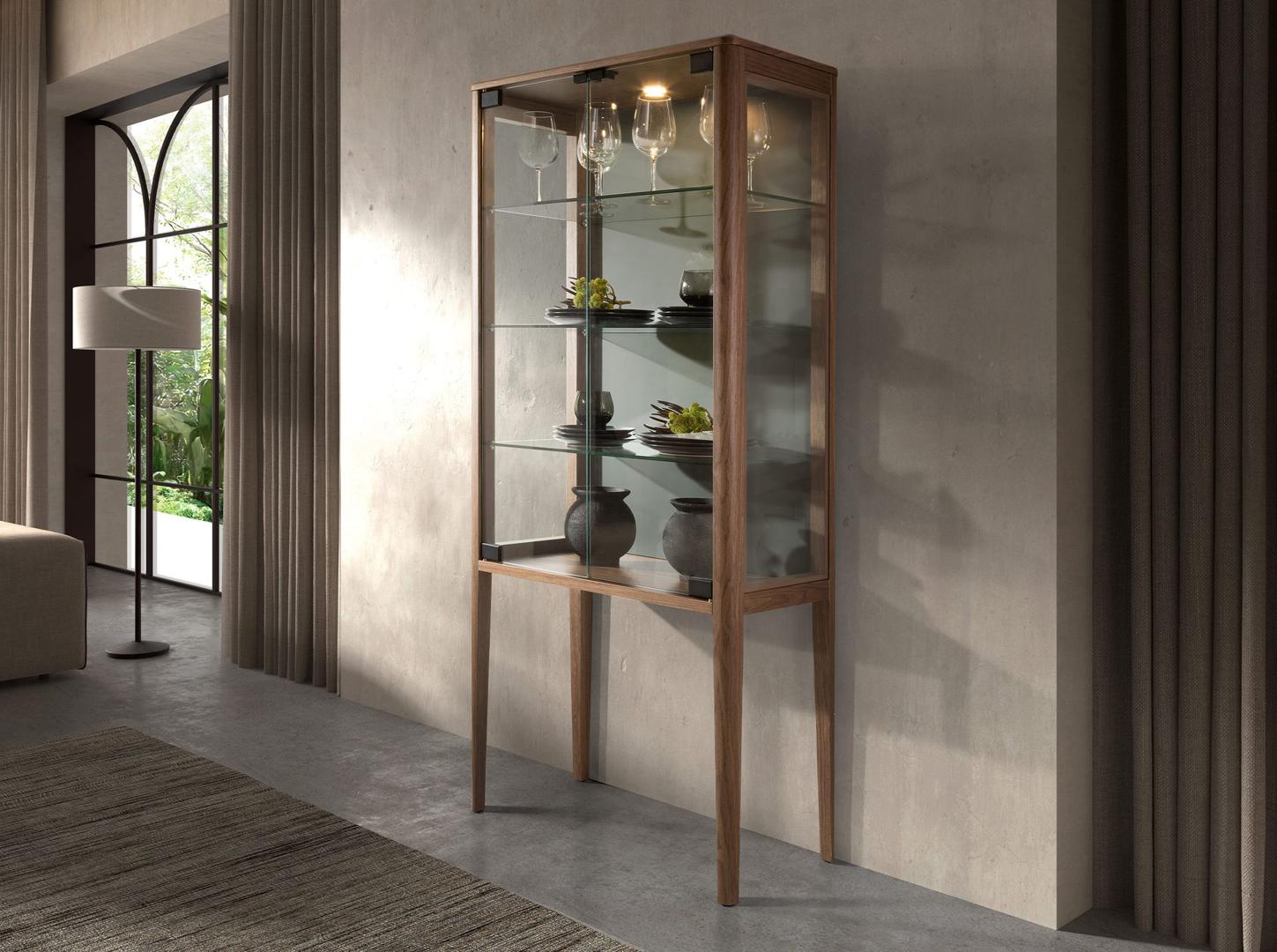 Буфет Angel Cerda Высокий буфет 3292 из закаленного стекла и орехового дерева с подсветкой арт. 503206