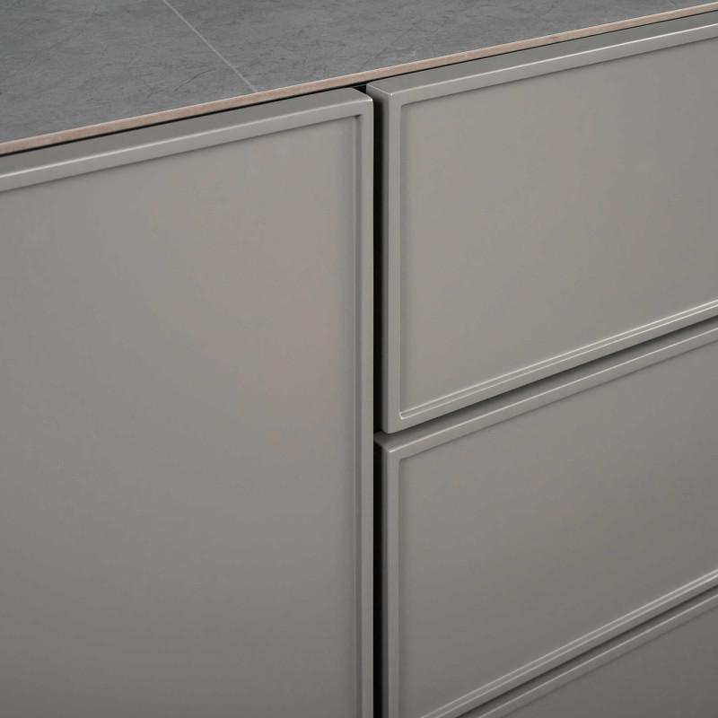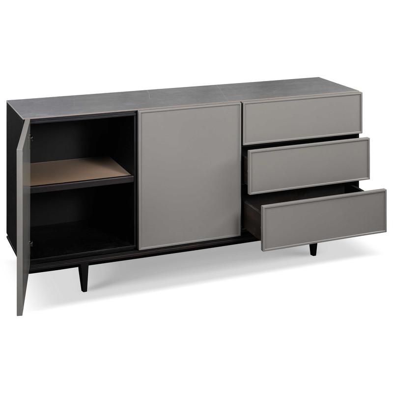 Стильный буфет от итальянского бренда Fratelli Barri. Столешница изготовлена из искусственного камня под серый мрамор, корпус в шпоне дымчатого дуба, фасады ящиков в отделке серым матовым лаком. Ножки изготовлены из массива ясеня. Тумбочка оснащена 2 дверцами и 3 выдвижными ящиками с системой закрывания soft-closing. Данный предмет — часть новой коллекции Concept от Fratelli Barri, включающей всю корпусную мебель для спальни, гостиной и столовой. Вы можете оформить интерьер вашей квартиры или дома в едином стиле.