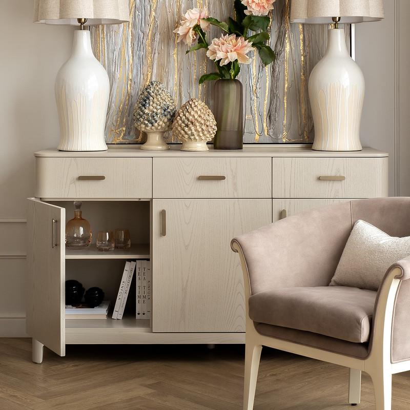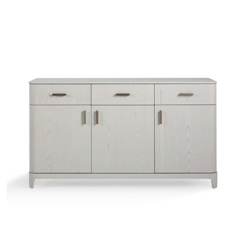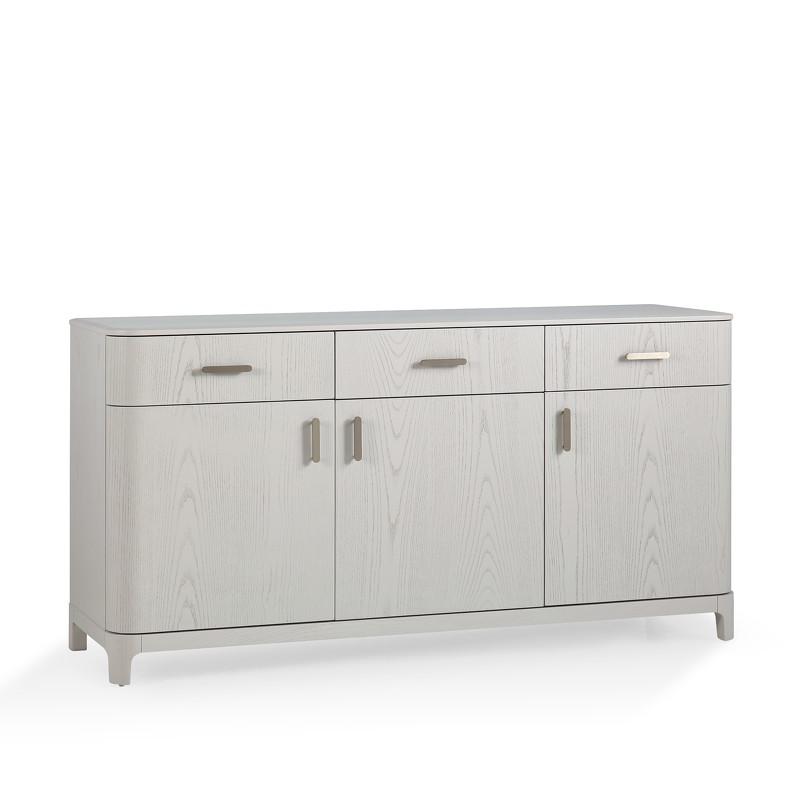 Буфет от итальянского бренда Fratelli Barri - функциональный предмет мебели для современной столовой или гостиной. Буфет оснащен тремя дверцами и тремя выдвижными ящиками, что позволяет организовать удобное хранение абсолютно любых вещей, при этом не создавая визуального шума. Ящики cо скрытыми направляющими и системой плавного закрывания "soft close". Дно ящиков покрыто бархатной тканью. Отделка - натуральный шпон ясеня. Сам буфет изготовлен из высококачественного МДФ высокой плотности, основание из массива дерева.