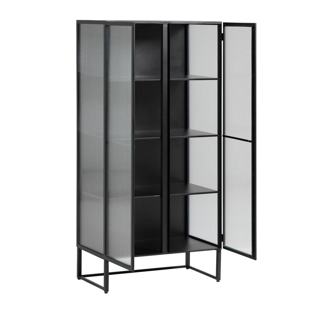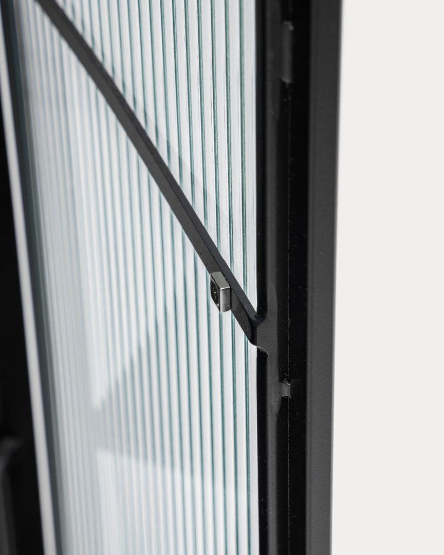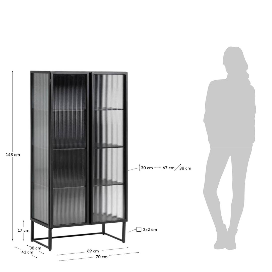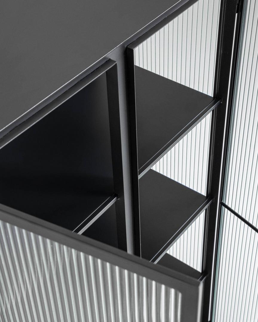 Буфет Trixie от фабрики La Forma (ex Julia Grup) – приоритетный подход к стеклу, воплощенный в промышленном дизайне Буфет Trixie удивляет своим исполнением. Здесь текстурированное стекло создает невероятный визуальный эффект. В совмещении с минималистичным дизайном, этот предмет мебели непременно украсит ваш интерьер, и, при этом, не нарушит цветовой баланс. У вас не будет причин не любить буфет Trixie – он совершенно оригинальный и модный! Буфет имеет металлическую структуру, в которую вставлены фасады из закаленного текстурированное стекла. Стекло затемненное, ударопрочное, что делает изделие безопасным при эксплуатации. Каркас черного цвета, с матовым порошковым покрытием. Конструкция оснащена четырьмя распашными дверями без ручек (открываются нажатием) с мягкой системой закрытия на магнит. Основание имеет рамочную структуру, с квадратной формой ножек толщиной в 2 см. Высота ножек – 17 см. Снизу у них предусмотрены пластиковые накладки, которые защищают напольное покрытие от повреждений. Общая максимальная нагрузка – 30 кг Размеры: ширина – 70 см, высота – 143 см, глубина – 41 см. Вес изделия – 44 кг Потребуется самостоятельная сборка.