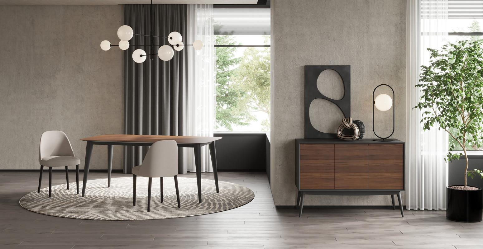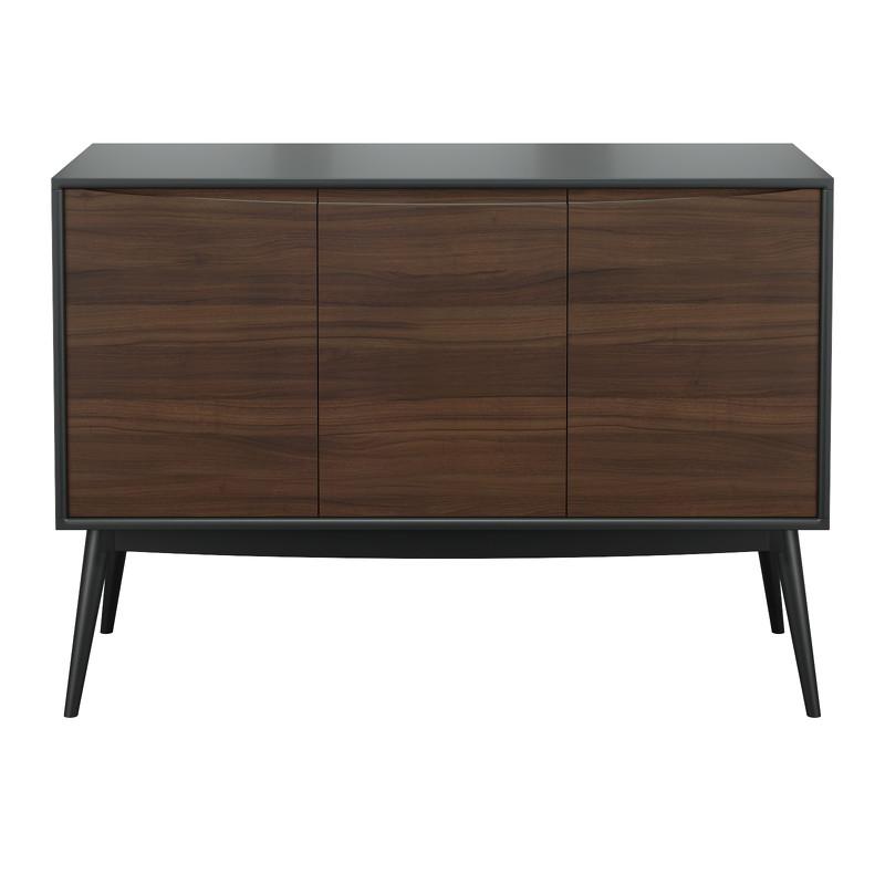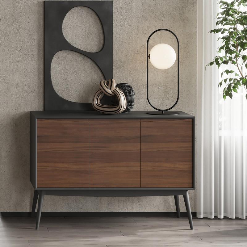Дизайнерский буфет на высоких ножках из коллекции Sevilla от MOD Interiors — сочетание современного дизайна, где геометрическая простота форм сочетается с благородством отделки. Изготовленный из МДФ с отделкой в шпоне американского ореха и матовым серым лаком, он привносит в интерьер визуальную легкость. Модель имеет 3 распашные дверцы, оснащенные системой soft-close, открываются бесшумно и плавно, что подчеркивает высокое качество механики и мастерство исполнения. Внутри расположены 6 полок. Этот буфет станет акцентным элементом интерьера, органично объединяя эстетику и функциональность.