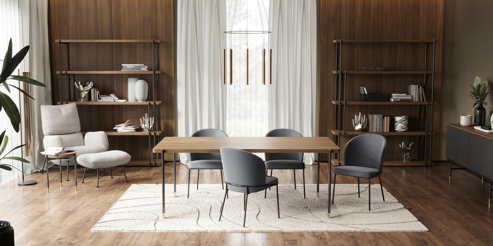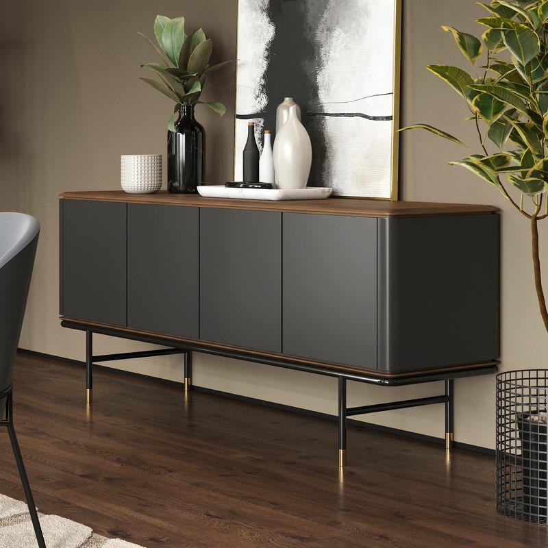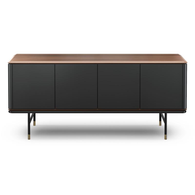 Буфет из модной коллекции Altea от бренда MOD Interiors. Вся мебель Altea выполнена в современном стиле с большим влиянием ретро 60-х (mid-century modern). Силуэтный дизайн на высоких черных ножках с латунными колпачками идеален для создания лаконичного интерьера. Матовые фасады красиво рассеивают естественный и искусственный свет. Столешница буфета выполнена в натуральном шпоне ореха и имеет скругленные углы, что предотвращает травмирование. Фасады в отделке благородным темно-серым матовым лаком.