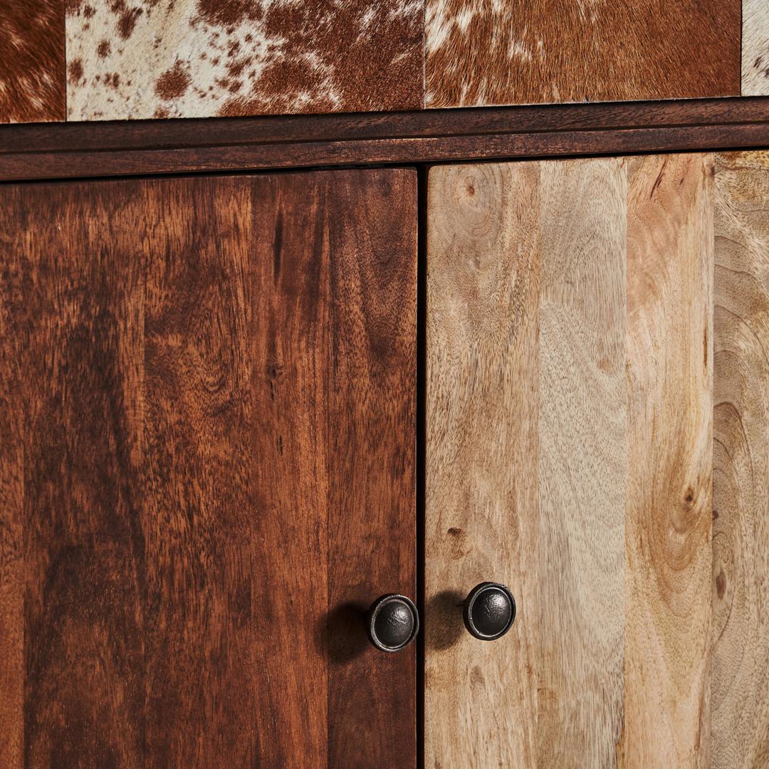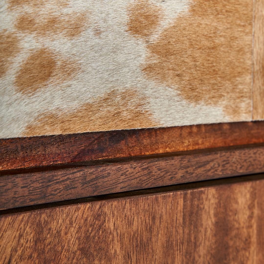 Мебель для бара Texas, коричнево-бежевая, в скандинавском стиле. Изготовлен из переработанной древесины манго в сочетании с ковкой и воловьей кожей.