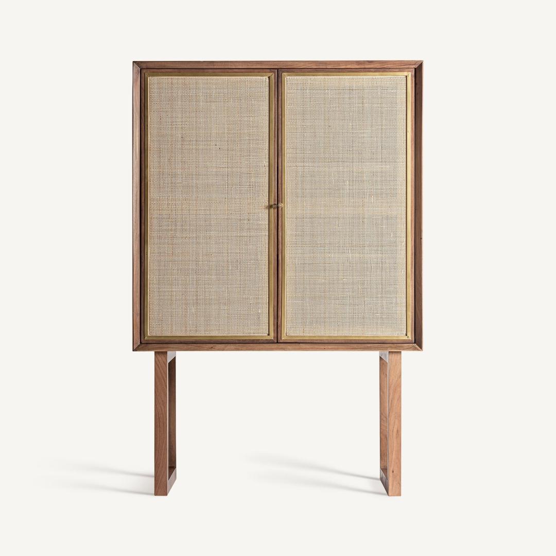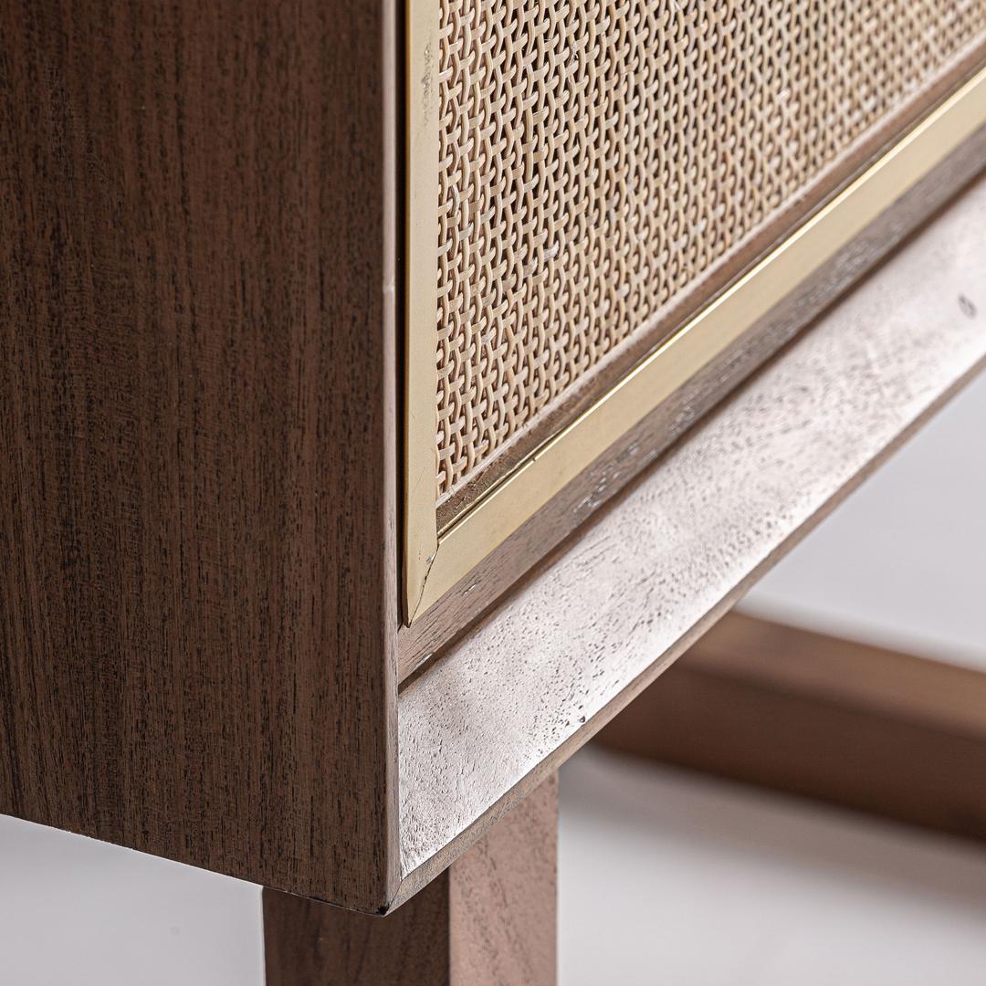 Шкаф Gondorf от VICAL сочетает в себе теплоту древесины манго с естественной текстурой ротанга, создавая предмет мебели в скандинавском стиле, излучающий спокойствие. Латунь с золотым покрытием добавляет нотку света и изысканности, делая его функциональным шкафом с декоративной душой. Ширина: 100 см, Глубина: 45 см, Высота: 150 см