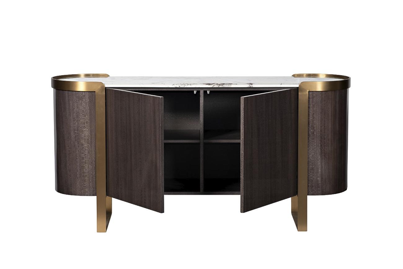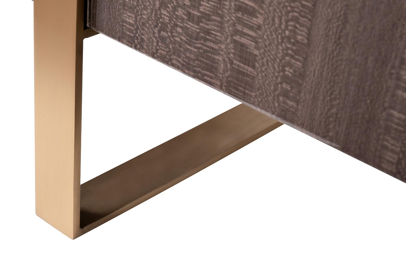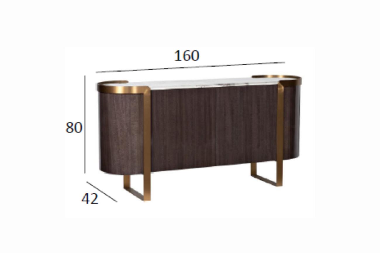 description-full - Комод из коллекции Севилья (Sevilla), выполненный в изысканных дымчато-серых тонах, сочетает в себе самые последние тренды мебельного дизайна класса «люкс», отделку современными материалами с использованием шпона ценных пород дерева, стали цвета латунь, зашлифованной до сатинового блеска, и столешницей под мрамор. При изготовлении используется драгоценный шпон дерева лайсвуд. Это дерево отличается необычайно красивой древесиной с шелковистым блеском и характерным рисунком, напоминающим змеиную кожу. Элегантные округлые формы, благородство мраморной фактуры, высокое качество исполнения делает предмет коллекции образцовой мебелью для современной обстановки. Комод гармонично дополнят тумбочка арт. 58DB-NS20001, консоль арт. 58DB-CST2005, стол арт. 58DB-CST20050 и стеллаж арт. 58DB-SH20025 из этой же коллекции.