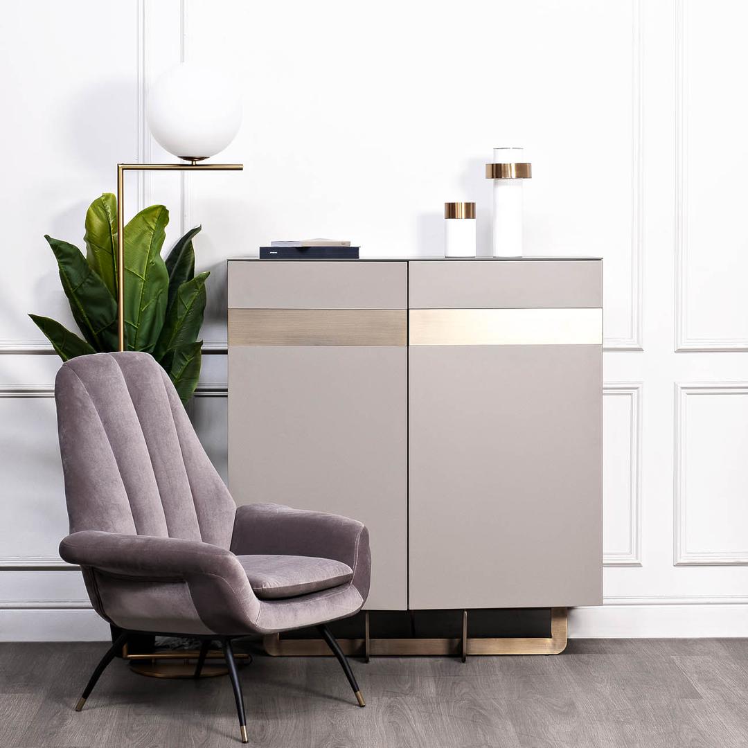 description-full - Cуперсовременный высокий комод из мебельной коллекции Космос (Space) от ведущего бельгийского дизайнера Тома Де Вульфа воплощает последние тенденции европейской интерьерной моды. Столешница покрыта закаленным 5мм стеклом. Серый лакированный фасад выполнен из высококачественного МДФ и отделан стальными полосами с медным покрытием. В комоде имеется два вместительных отделения с полками и распашными дверцами с механизмом нажми-открой (push-to-open). Оригинальная фигурная опора медного цвета заменяет традиционные ножки, обеспечивая устойчивость и безопасность конструкции даже при полной загрузке полок. Все части комода выполнены из исключительно качественных материалов по самым современным технологиям. Вы можете подобрать комод арт. 58DB-CH14803, консоль арт. 58DB-CST14803, журнальные столы арт. 58DB-CT14803, арт. 58DB-ET14803, ТВ-тумбы арт. 58DB-TV14803, арт. 58DB-TV14803S, обеденные столы арт. 58DB-DT14803, арт. 58DB-DT14803S, стеллажи арт.58DB-SH16061A, арт.58DB-SH16061B и стул арт...