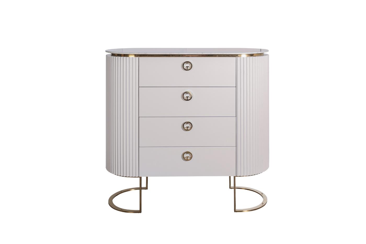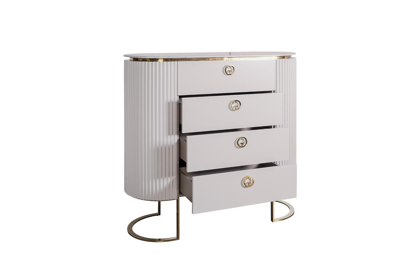 description-full - Оригинальный дизайнерский комод СВЕТЛО-СЕРОГО цвета воплощает в себе последние модные тренды мебельной индустрии - необычную геометрию, классические цвета, нестандартные изгибы линий, эргономичность и функциональность. Особого аристократизма добавляет мраморная столешница. Несмотря на компактные размеры, комод с выдвижными ящиками отличается вместительностью. Выдвижные ящики позволяют спрятать посторонние вещи и достичь максимального комфорта в комнате. Комод с мраморной столешницей дополнят консоль, тумба под телевизор и прикроватная тумбочка из коллекции Лучано (Luciano).