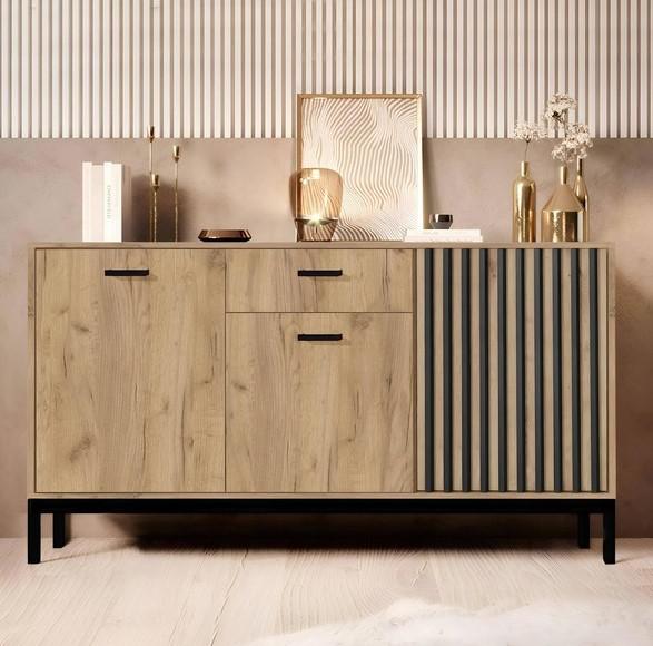 Вес, кг: 56,4 / Высота (см): 84 / Гарантия, мес.: 12 / Глубина (см): 40 / Количество коробок: 3 / Материал каркаса: ЛДСП / Материал фасадов: МДФ / Необходимость сборки: да / Размер упаковки 1: 1,6/0,48/0,11 / Размер упаковки 2: 0,73/0,58/0,09 / Размер упаковки 3: 0,36/0,21/0,12 / Страна производитель: Польша / Цвет: дуб/черный / Ширина (см): 154