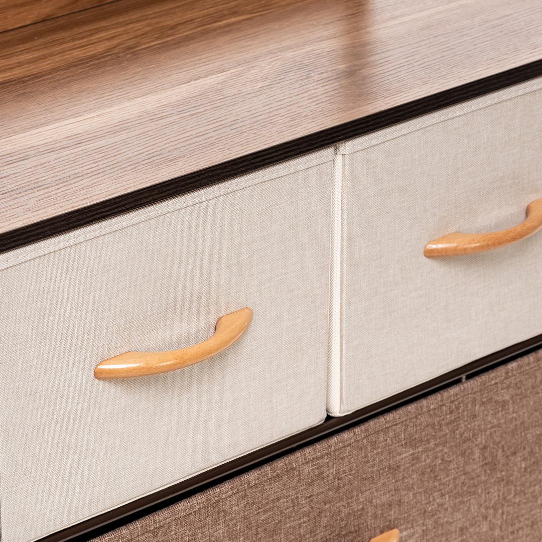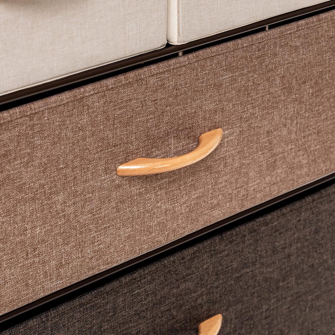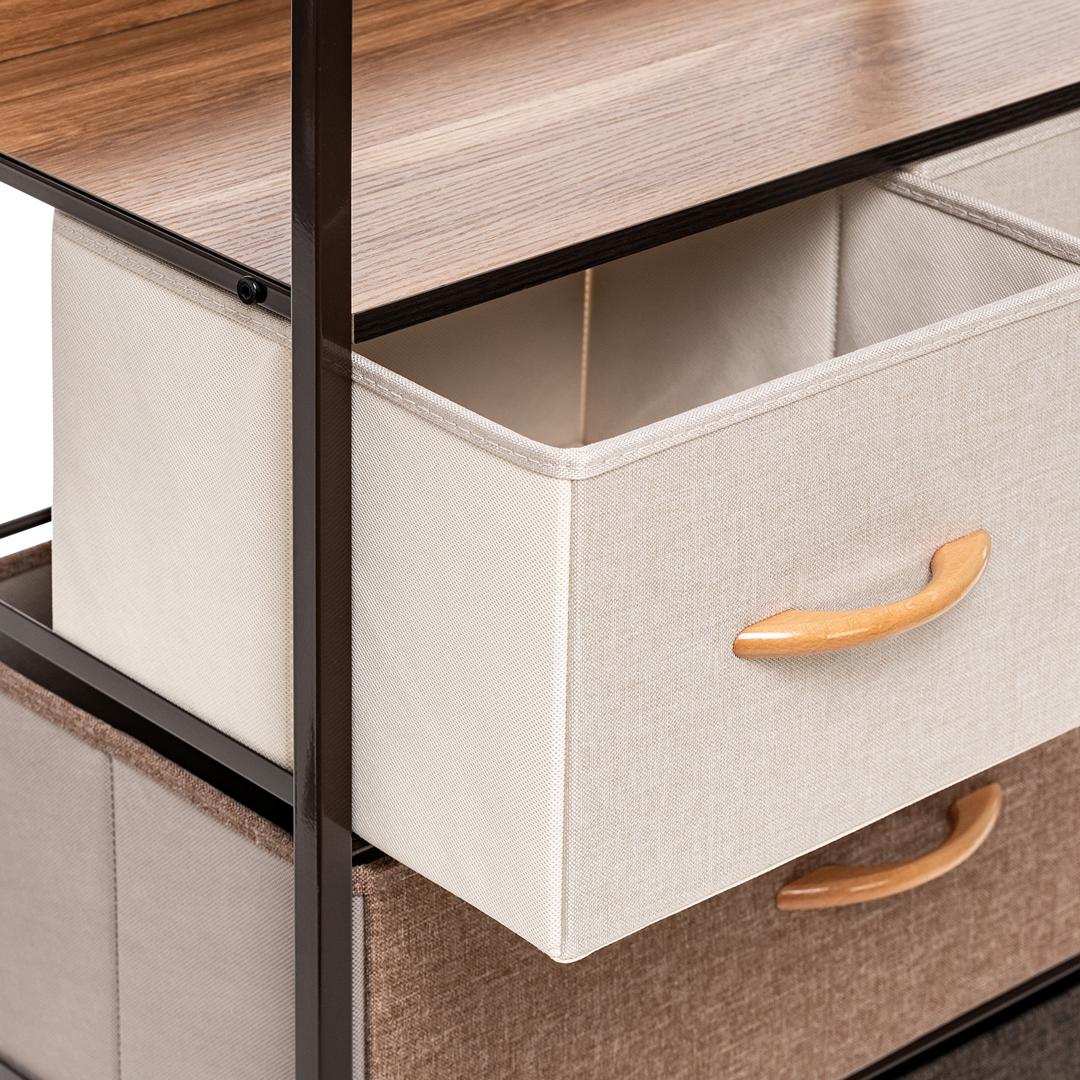 Leset Локи-4 – это узкий комод с 4 ящиками из нетканого материала, оснащенными ручками из дерева. Верхняя планка мебельного комода располагается на некотором расстоянии от крышки ящика, образуя полку. Каркас комода выполнен из стали, а ножки – из прочного пластика, который не царапает половое покрытие. Модульный комод – одна из наиболее удобных систем хранения. Она позволяет пользоваться всем внутренним пространством комода, располагая находящиеся в комоде вещи так, чтобы их не приходилось искать. Особенности: • Сочетаемость с другими мебельными комодами; • Металлическая рама с нескользящими ножками долговечна, обеспечивает хорошую посадку и не вредит полу; • Простой уход – протирайте влажной тканью; • Можно крепить к стене и регулировать по высоте; • Быстрая сборка – 10 минут; Рекомендуем прикручивать комод к стене с помощью шурупов (в комплекте), согласно инструкции. Это исключит возможность опрокидывания комода.