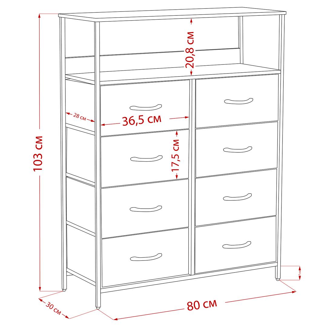 Комод "Leset Локи" сочетает эргономику с современным дизайном. Его компактные размеры скрывают вместительность, а красный клен МДФ и деревянные ручки добавляют изысканности. Ящики из спанбонда и искусственного льна, укрепленные картоном, защищены от влаги. Размеры ящиков 365х280х175 мм. Ножки регулируются для стабильности, а крепление к стене обеспечивает безопасность. Открытые полки — для книг и украшений, подчеркивают стиль. Идеален для любого интерьера.
