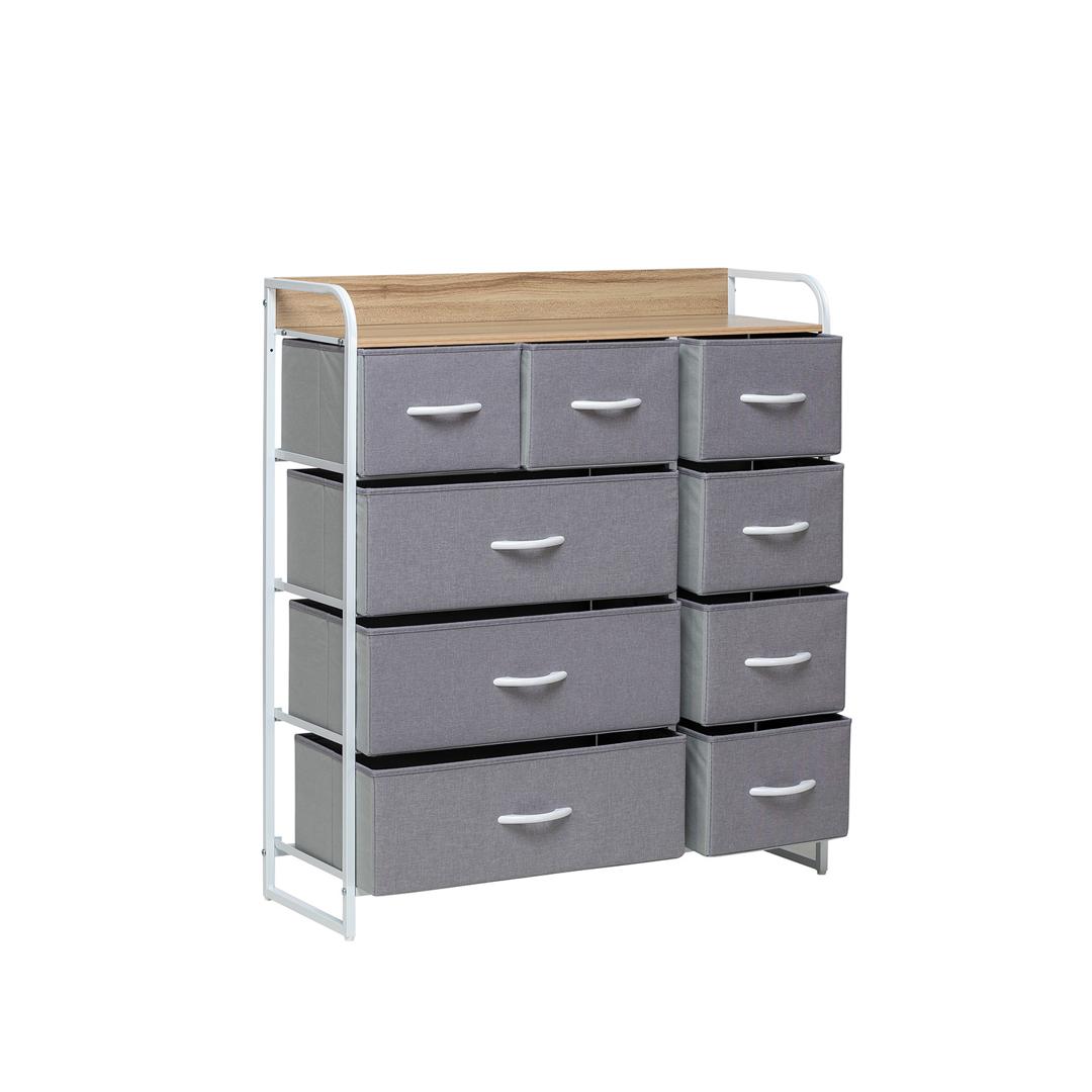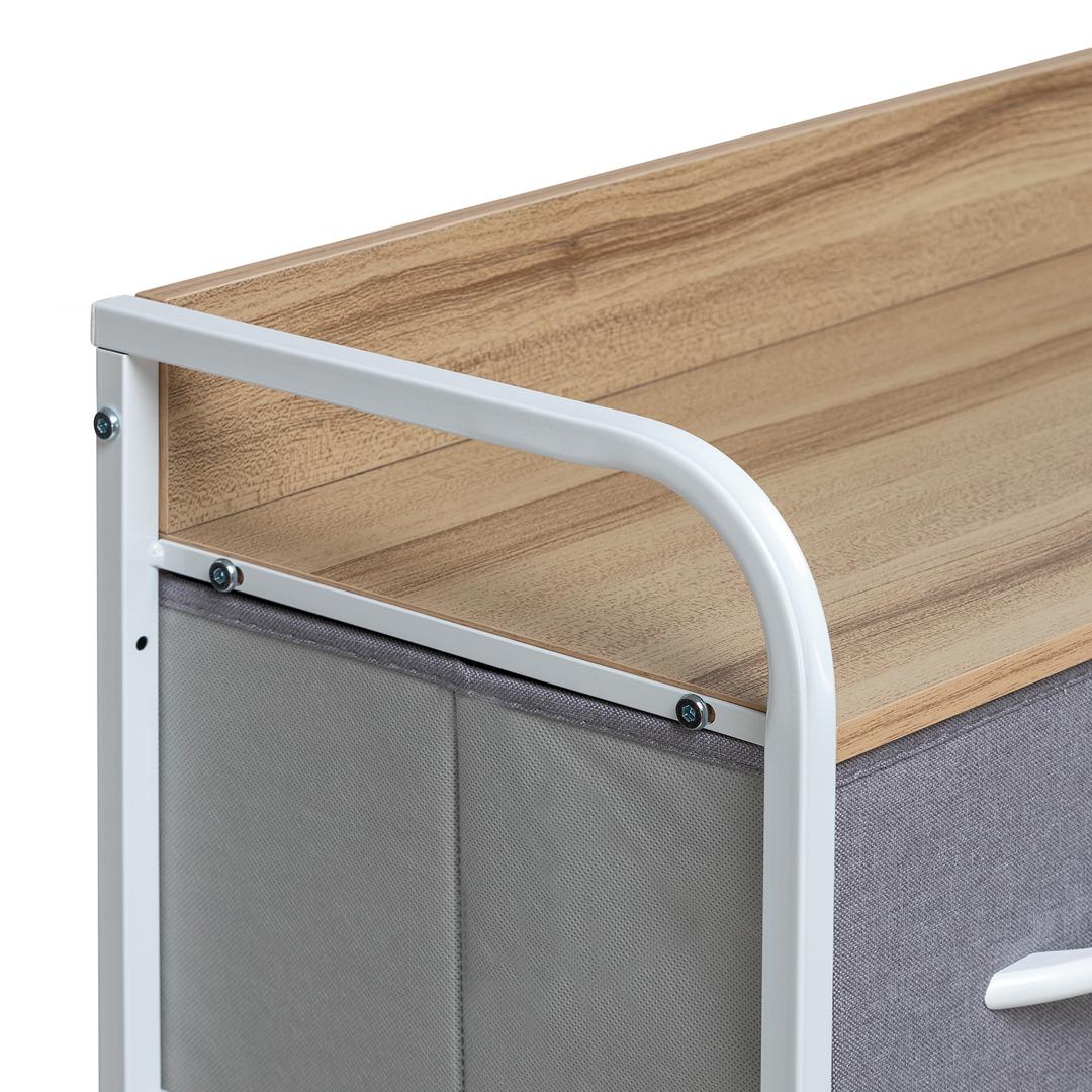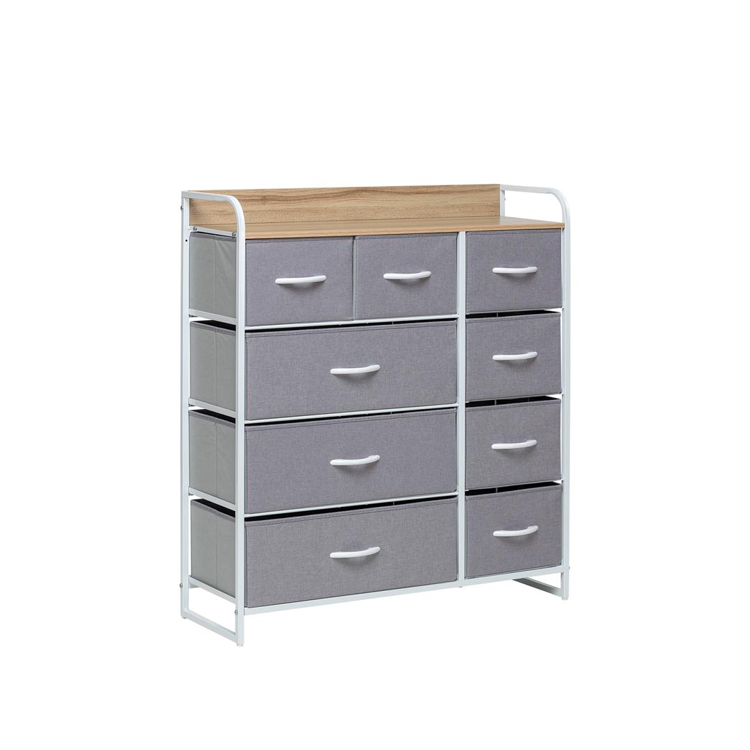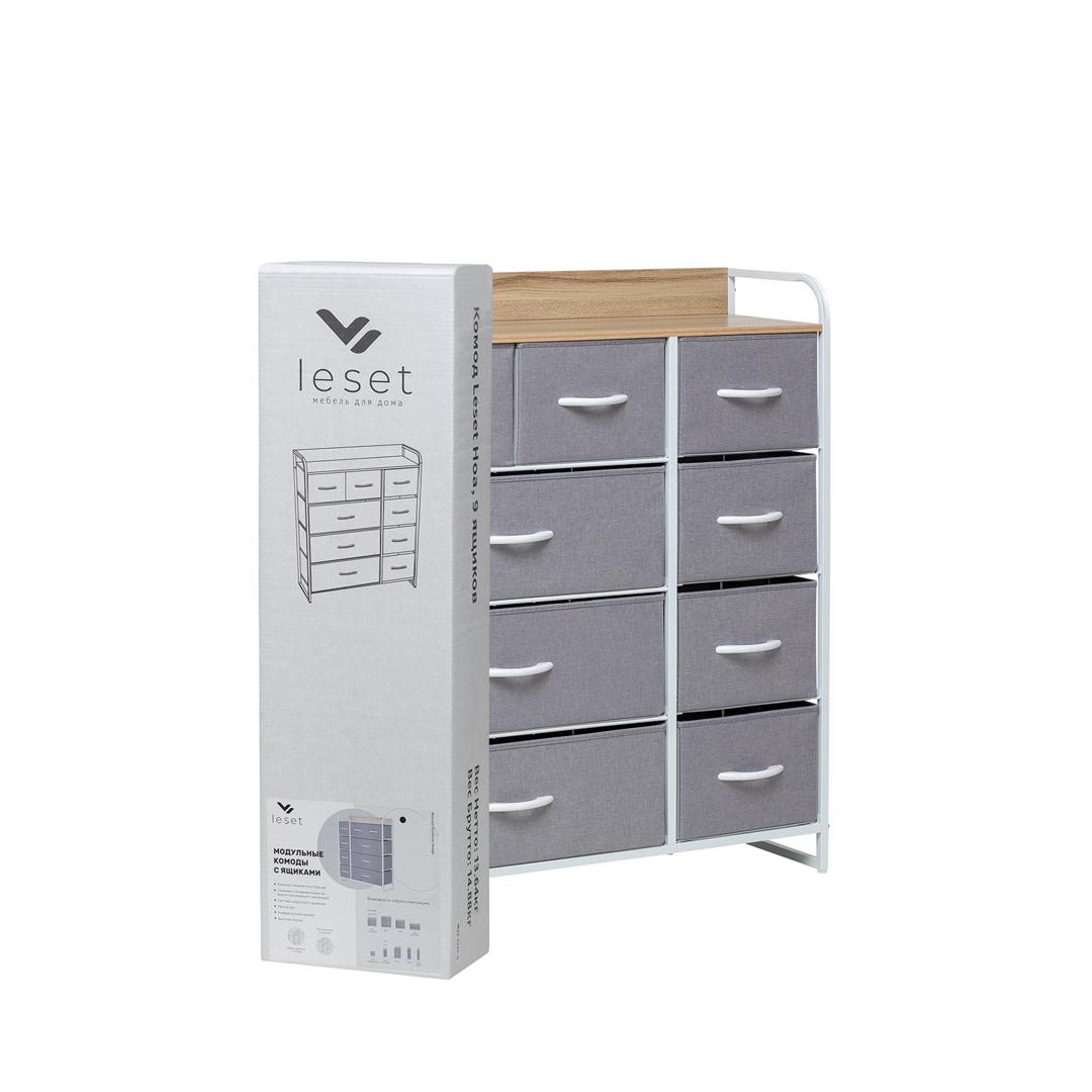 Комод Leset Ноа с 9 ящиками — это лёгкая и вместительная модель с оригинальным дизайном. Он состоит из стального каркаса и пластиковых ножек, которые защищают пол от царапин. Ящички из дышащего нетканого материала имеют деревянные ручки, что делает их удобными для хранения различных вещей. Водостойкая верхняя панель из МДФ позволит использовать этот предмет мебели как пеленальный столик или для размещения декоративных элементов. Комод можно сочетать с другими мебельными элементами этой линейки. Он не требует сложного ухода — достаточно протереть его влажной тканью. Комод также можно крепить к стене и регулировать по высоте. Сборка занимает всего 20 минут. Чтобы предотвратить опрокидывание комода, особенно в детских комнатах и помещениях с маленькими детьми, рекомендуется прикрутить его к стене с помощью шурупов, входящих в комплект.