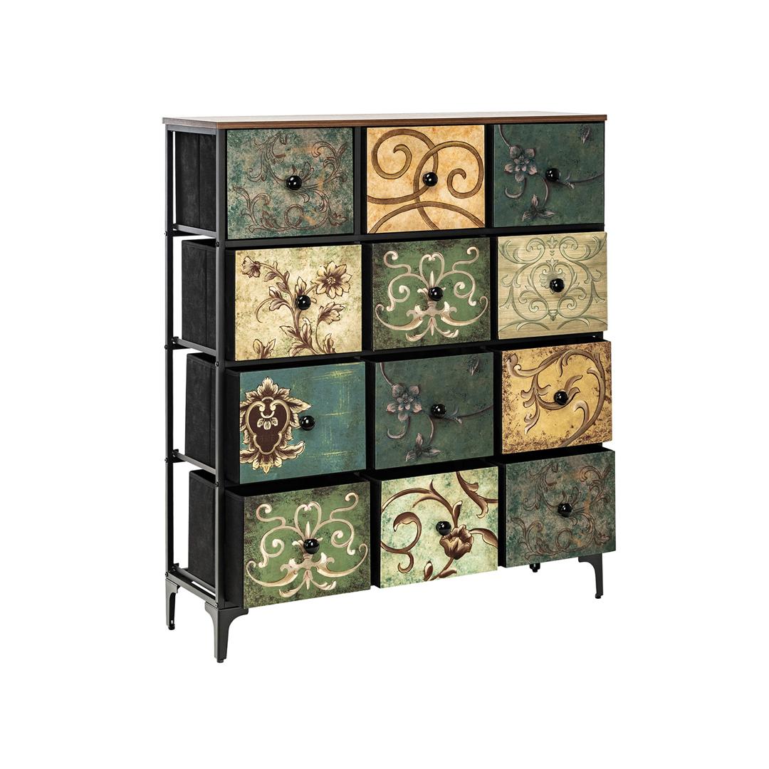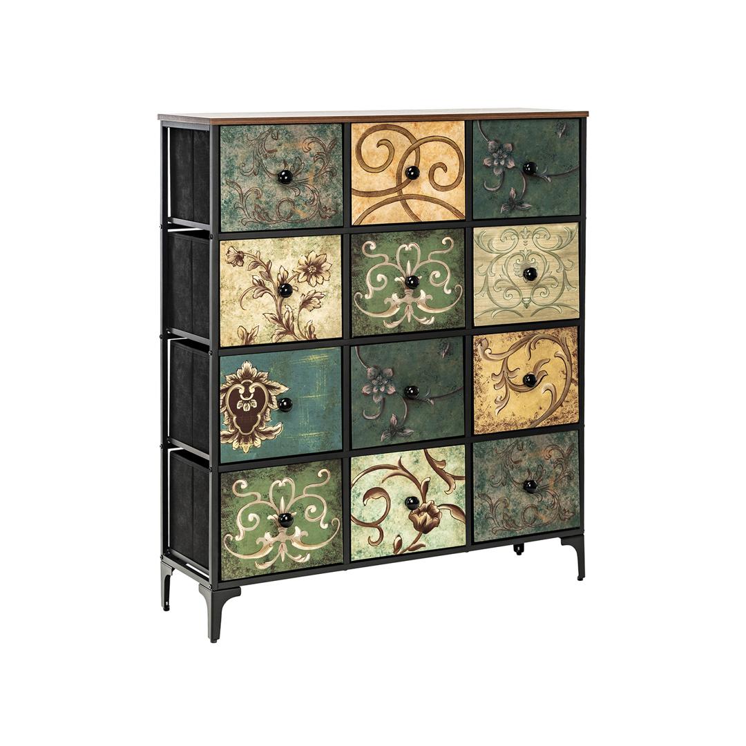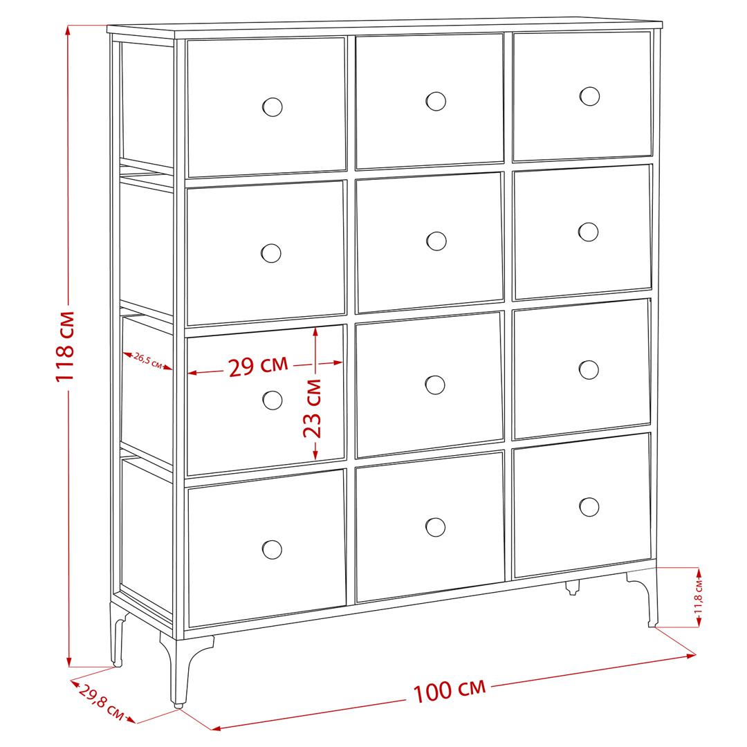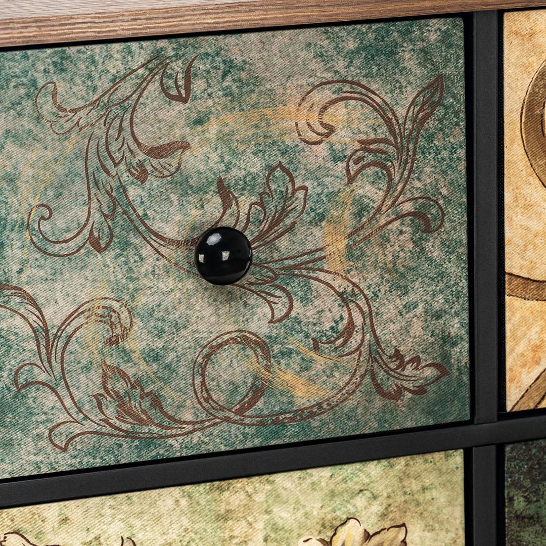 Комод Leset Лунет — объединяет функциональность и стиль, предлагая 12 ящиков с уникальными винтажными узорами, добавляющими интерьеру элегантность. Водоотталкивающий материал спанбонда и натуральные деревянные ручки обеспечивают простоту использования и ухода. Комод поддерживается прочной металлической рамой с регулируемыми ножками и защитой для пола, что гарантирует его долговечность. Столешница выдерживает до 30 кг, делая его идеальным для тяжёлых украшений или техники. Ящики рассчитаны на 5 кг каждый, подходя для хранения различных предметов. Прочные и лёгкие в обслуживании благодаря своей водоотталкивающей обработке, они сочетают в себе красоту и практичность. "Leset Лунет" станет идеальным решением для украшения и организации пространства в любой комнате вашего дома.