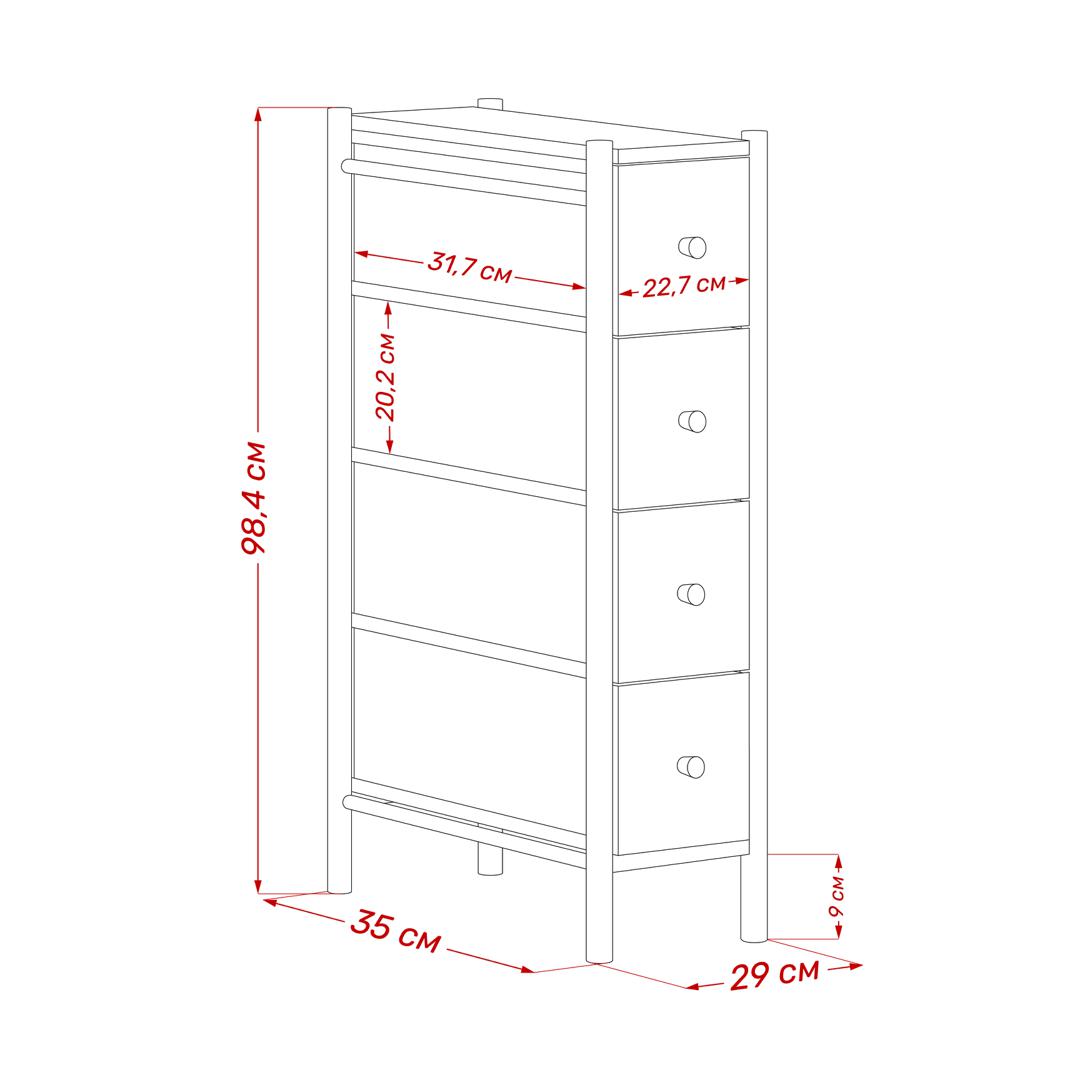 Комод Мебель Импэкс Комод Leset Нирита/Хайди узкий 4 ящика арт. 2500000252280
