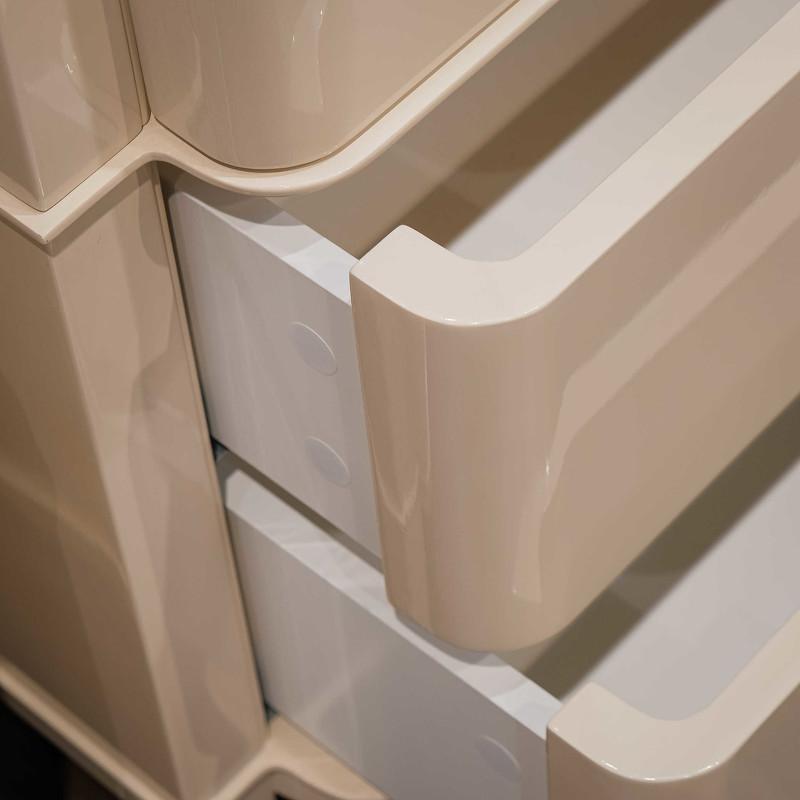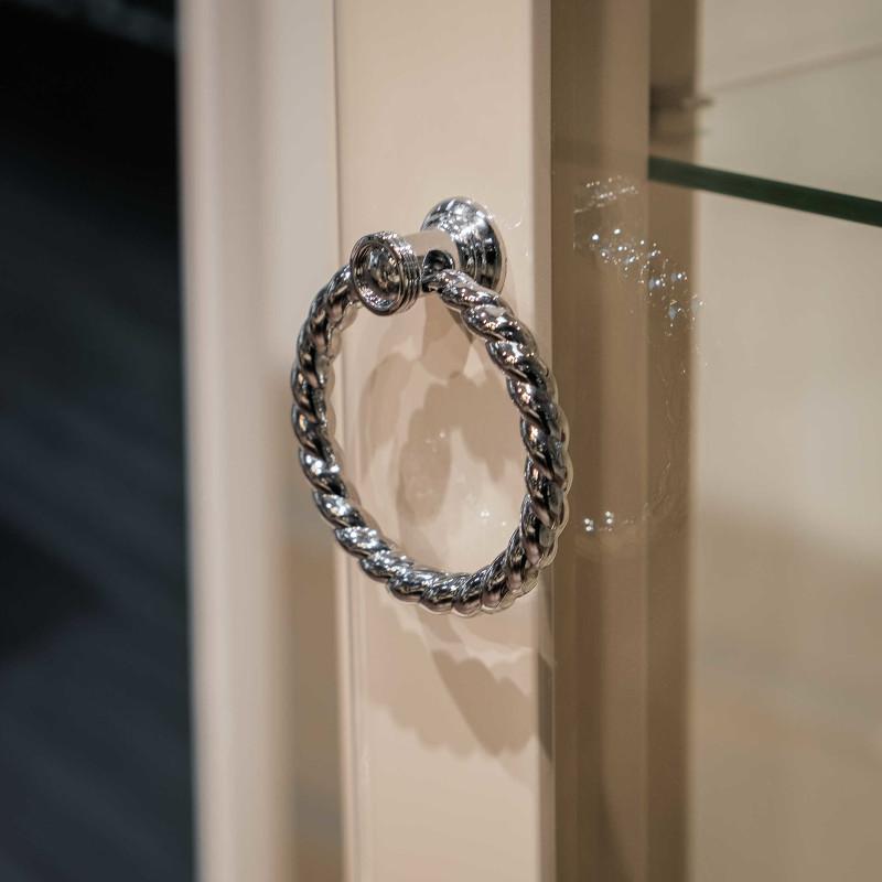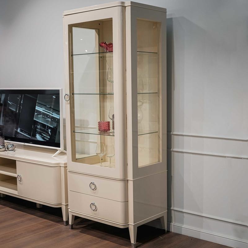Изящная витрина Modena от итальянского бренда Fratelli Barri. Витрина в неоклассическом стиле. Идеально сочетается строгость четких геометрических форм и бежевый глянцевый лак в отделке. Прекрасный внешний вид дополнен многофункциональностью витрины – имеется два выдвижных ящика и стеклянные полочки. Дверка универсальная - можно установить с левым и правым открыванием. Для удобства использования есть встроенная подсветка. На ножках металлические колпачки. Выполнена из массива дерева и высококачественного МДФ класса Е1. Цвет фурнитуры - хром. Ящики оснащены доводчиками для плавного закрывания. Стеклянная дверка и полки из закаленного стекла.