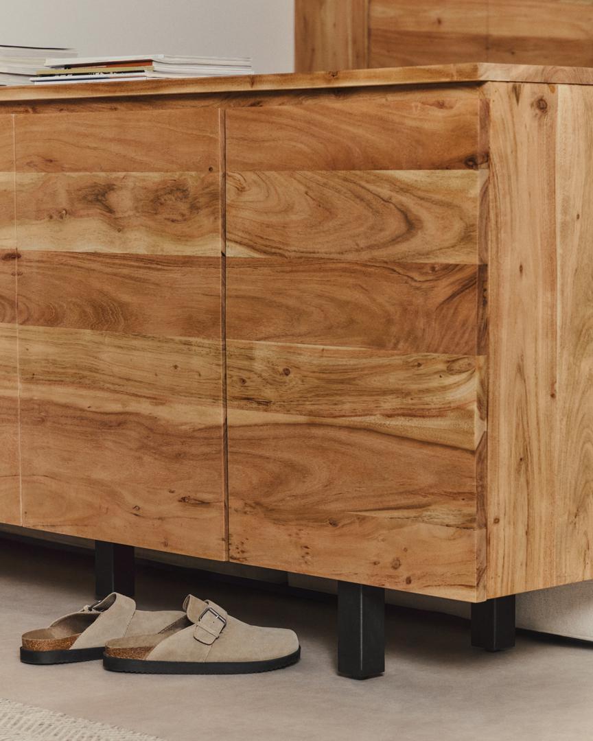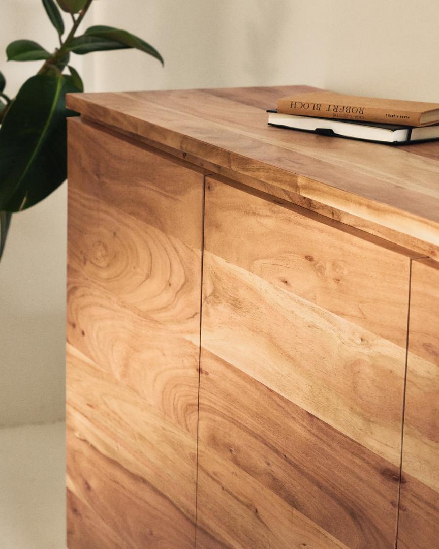 Коллекция Uxue переопределяет функциональность и стиль в любом пространстве с ее чистым, современным дизайном. Массив акации с отбеленной отделкой передает уникальное тепло и подчеркивает текстуру дерева, добавляя свет и изысканность помещению. Каждая дверца идеально интегрирована в изделие, создавая гармоничный и минималистский вид, который адаптируется к любому типу декора, от самого современного до самого классического.