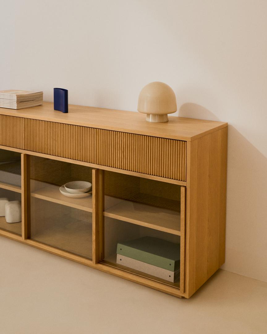 Сервант La Forma (ех Julia Grup) Сервант Helvine с 4 дверцами и 4 ящиками шпон дуба и закаленное стекло, 200 x 75 арт. 209201