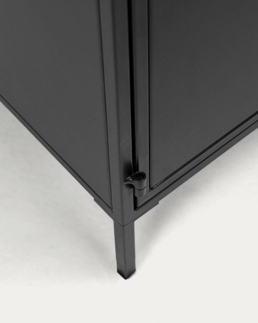 Сервант Shantay от фабрики La Forma (ex Julia Grup) – концептуальный минимализм для городской обстановки. Сервант Shantay способен радикально изменить внешний вид вашей домашней обстановки. Структура из квадратных труб делает дизайн изделия необычным. При этом у него остается минималистичный вид и соответствие модным тенденциям. Идите в ногу со временем – оформите свою гостиную практично и по моде. Сервант имеет каркасную конструкцию. Материал изготовления – металл, с матовым порошковым покрытием черного цвета. Каркас оснащен тремя распашными дверями с магнитными замками. Внутри находятся полки. Количество полок – 3. Максимальная нагрузка на полку не должна превышать 20 кг. Общая максимальная нагрузка на сервант не должна превышать 50 кг. Ножки серванта оснащены пластиковыми накладками, которые защищают напольное покрытие от повреждения. Они имеют квадратную трубчатую структуру шириной 1,2 см. Высота ножек 9,5 см. Размеры серванта: ширина – 160 см, высота – 72 см, глубина – 35 см. Вес изделия – 40 кг. Поставка осуществляется в разобранном виде. Инструкция и крепеж включены в комплектацию. В коллекции Shantay также представлена другая мебель – журнальный стол, тумбы.