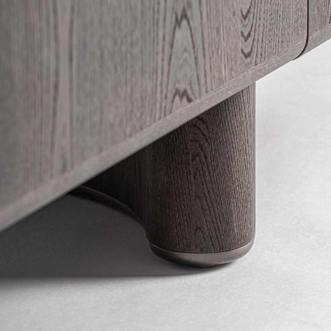 Буфет изготовлен из светло-коричневого МДФ в сочетании с коричневой фанерой. Ширина: 200 см, Глубина: 45 см, Высота: 83 см