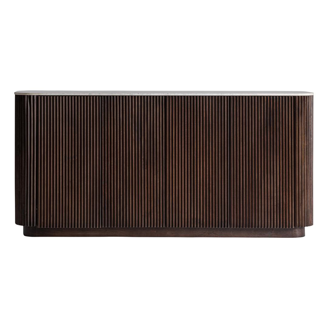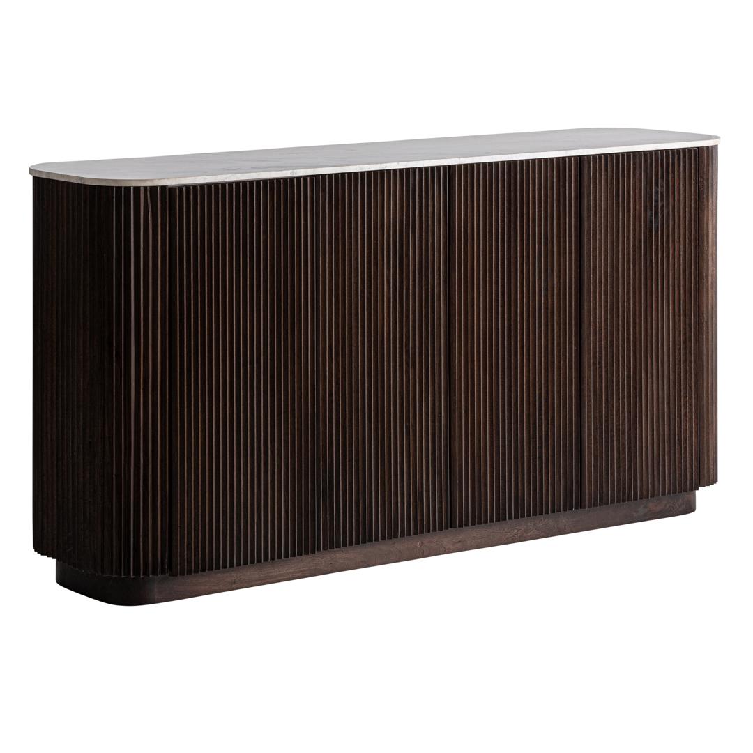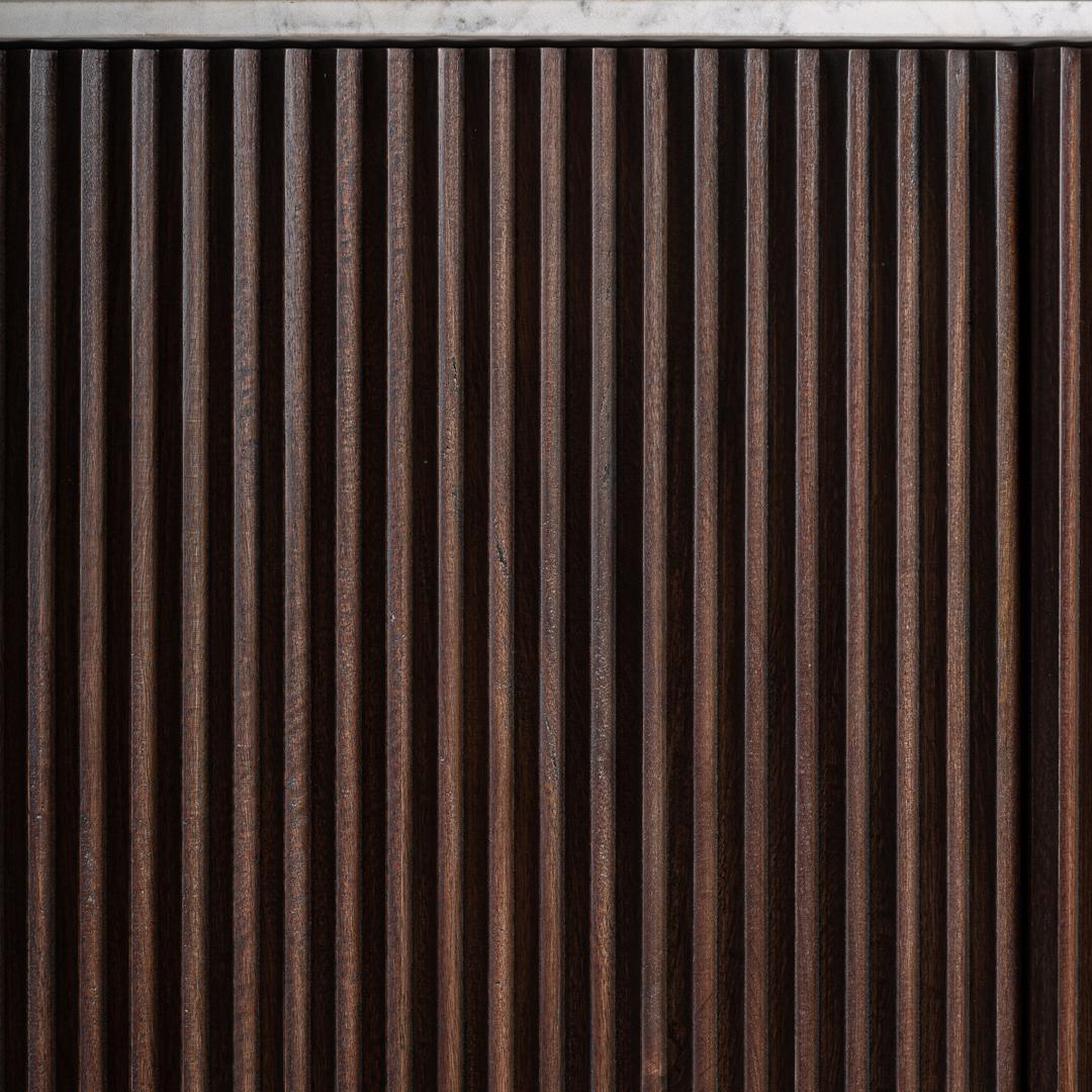 Буфет из коричневого мангового дерева в сочетании с белым мрамором. Ширина: 200 см, Глубина: 45 см, Высота: 96 см