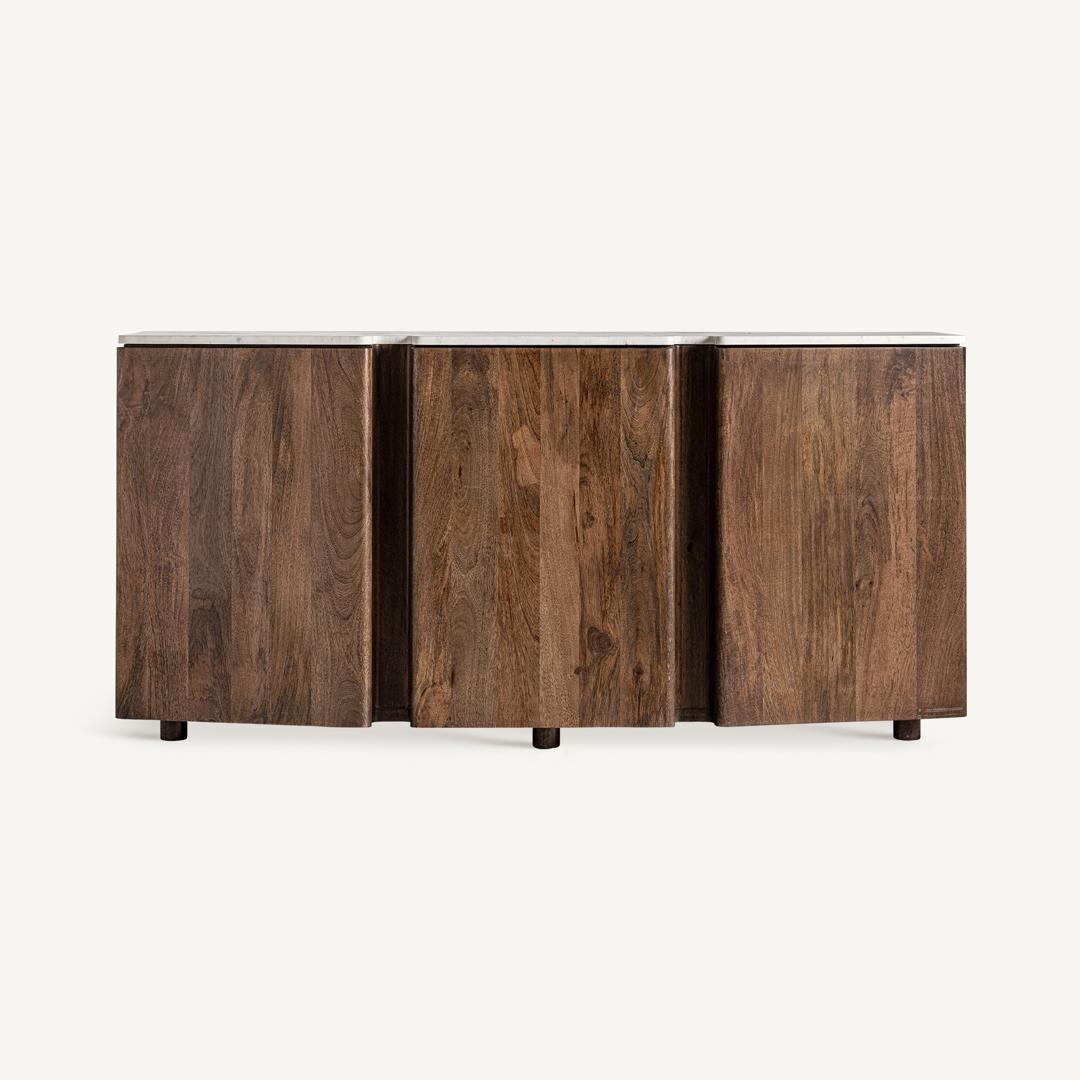 Подчёркивая прочность и красоту мангового дерева, буфет Konz от VICAL Home – образец мастерства и дизайна. Его массивные дверцы тёмно-коричневого оттенка создают ощущение прочности, а мрамор добавляет изысканности. Если вы ищете изделие, которое обеспечит вместительность, долговечность и потрясающую эстетику, буфет Konz с массивными дверцами – идеальный выбор для любого пространства. Ширина: 160 см, Глубина: 45 см, Высота: 75 см