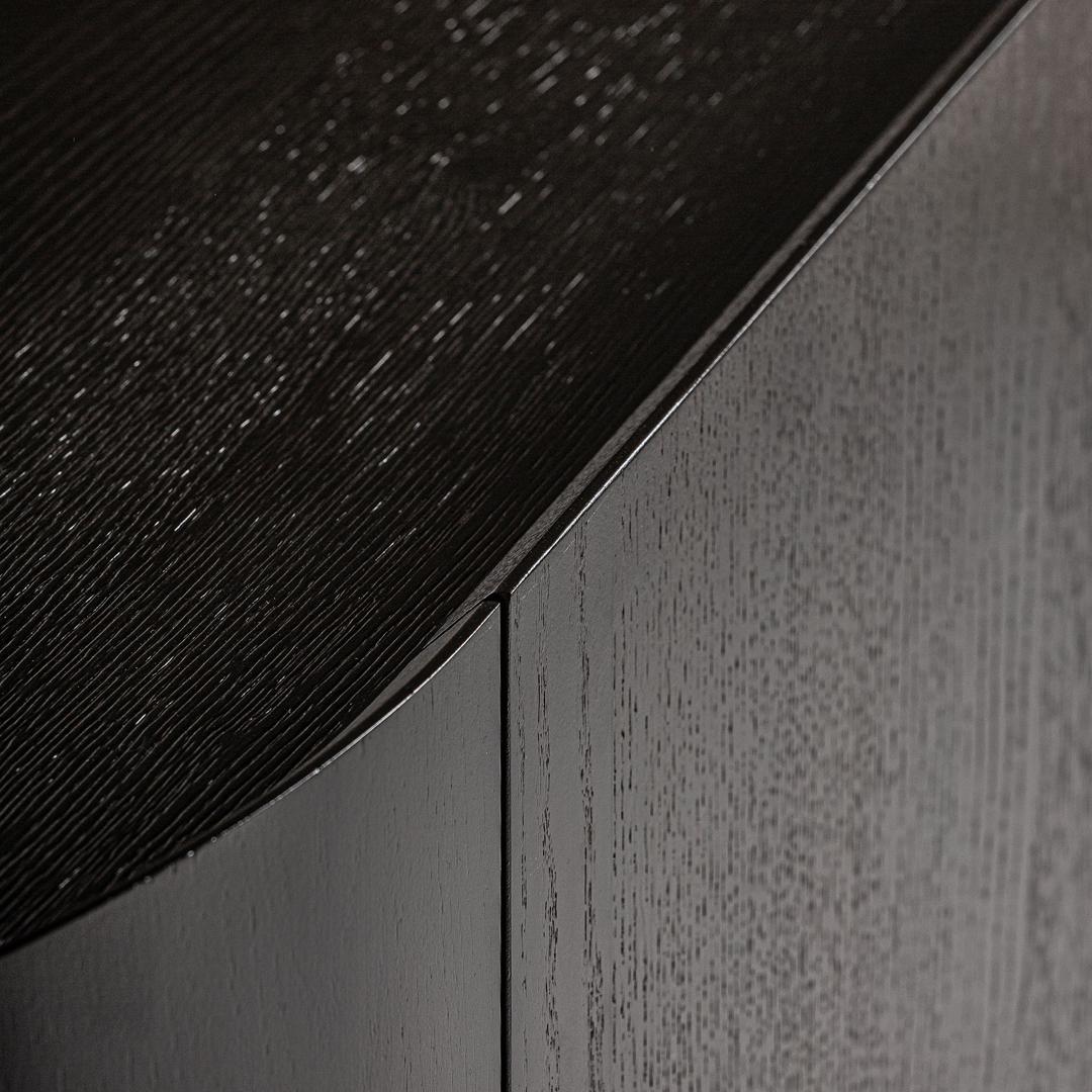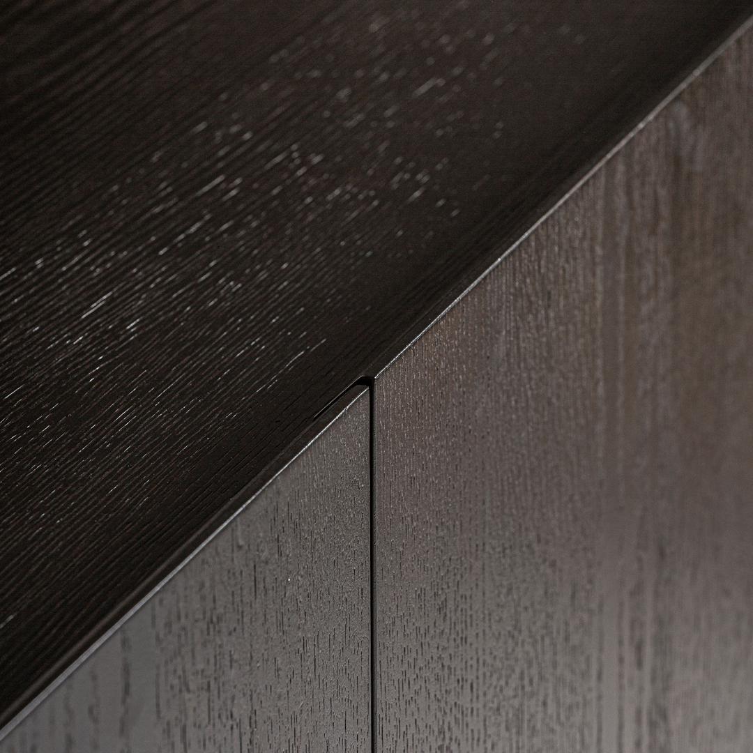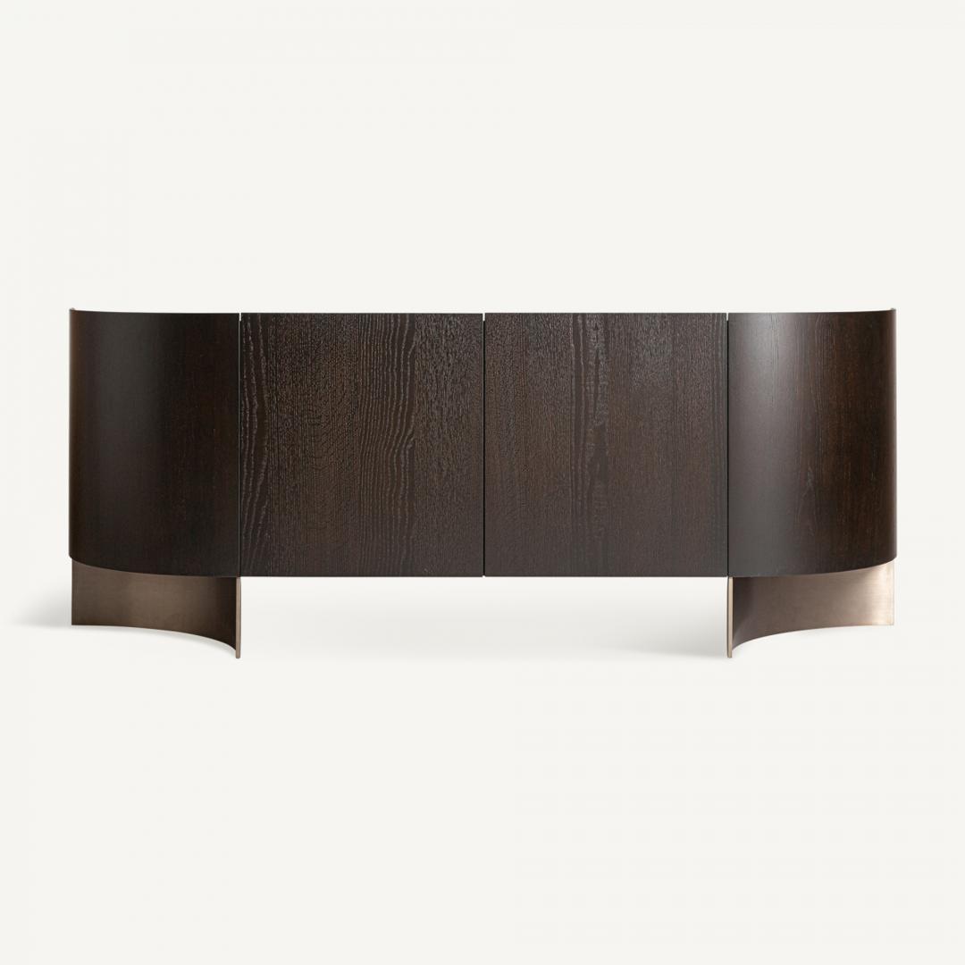 Буфет Neuvic в стиле ар-деко, изготовлен из шпона коричневого дуба в сочетании с фанерой и матово-золотой нержавеющей сталью. Изделие можно разобрать. Ширина: 220 см, Глубина: 50 см, Высота: 86 см.