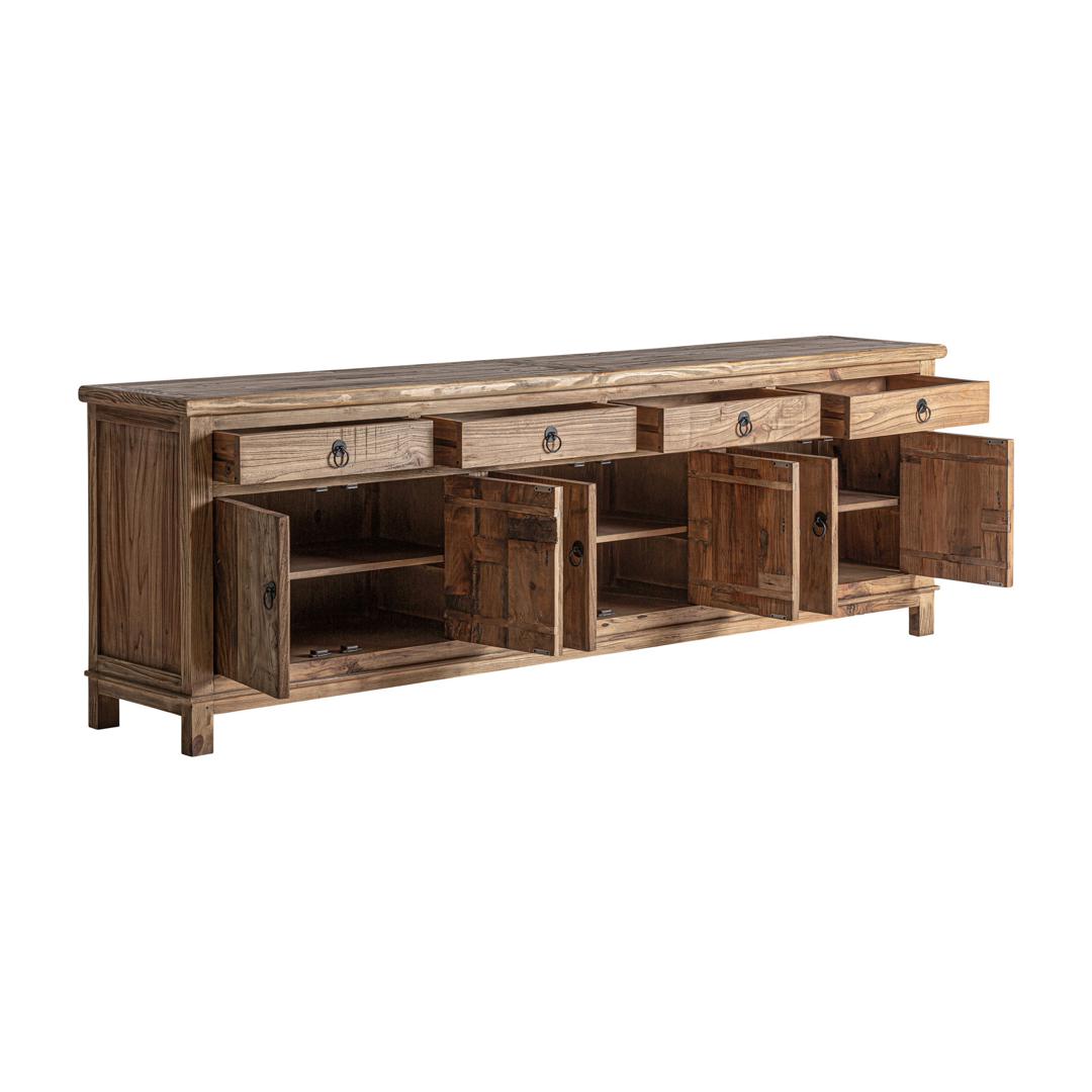 Буфет в деревенском стиле Туам, изготовлен из вяза коричневого цвета. Ширина: 250 см, Глубина: 45 см, Высота: 79 см