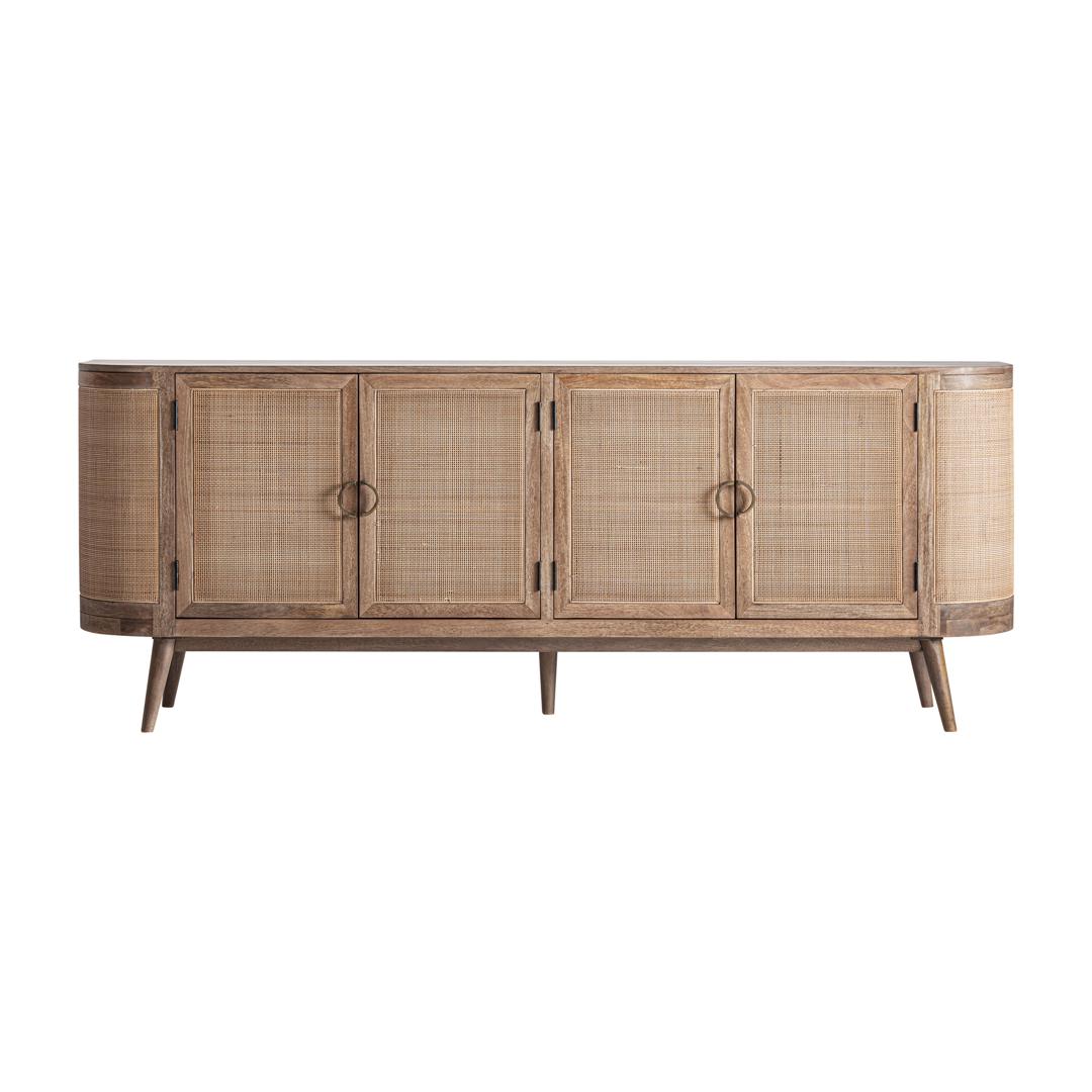Буфет из коричневого мангового дерева в сочетании со светло-коричневым ротангом и DM-деревом. Ширина: 220 см, Глубина: 41 см, Высота: 85 см