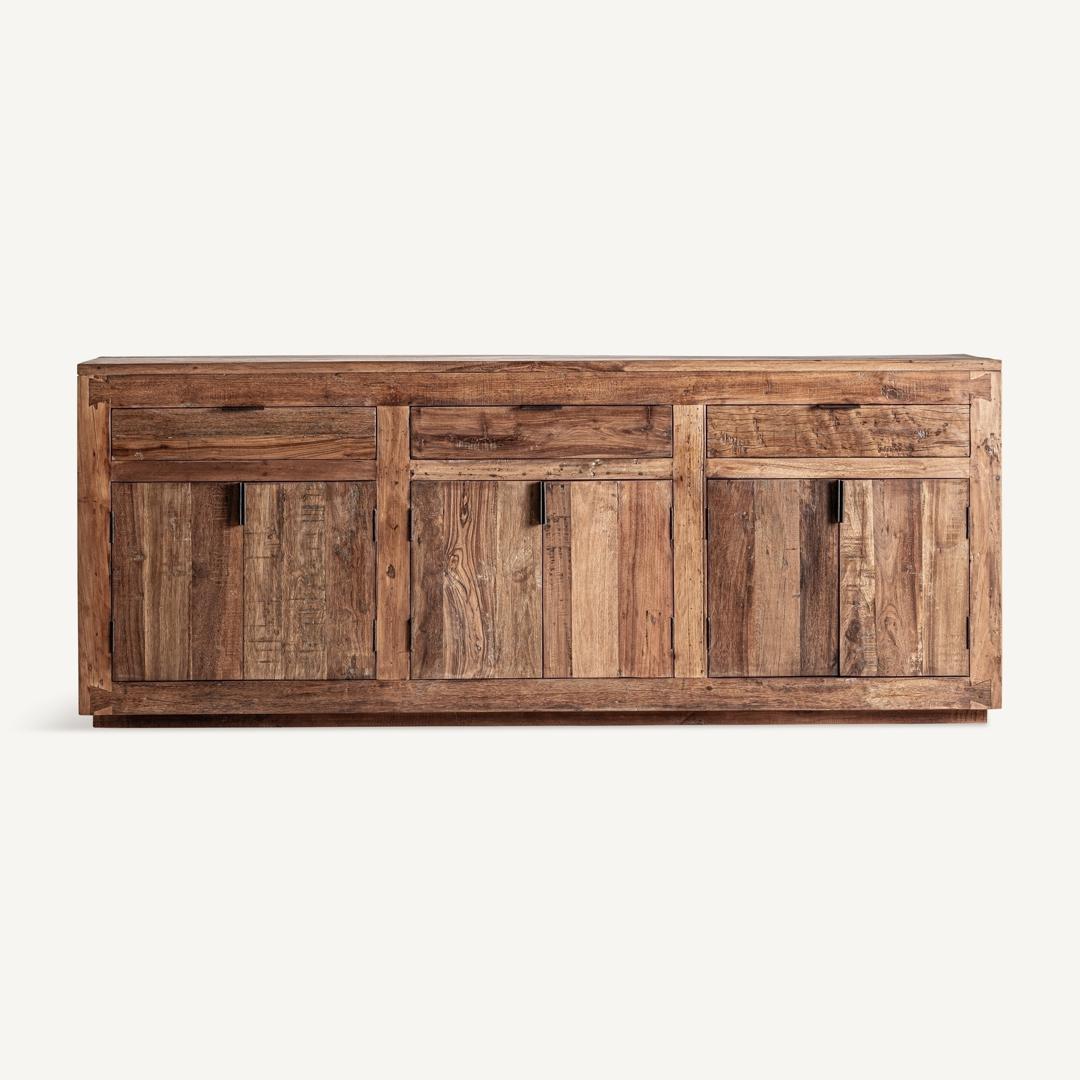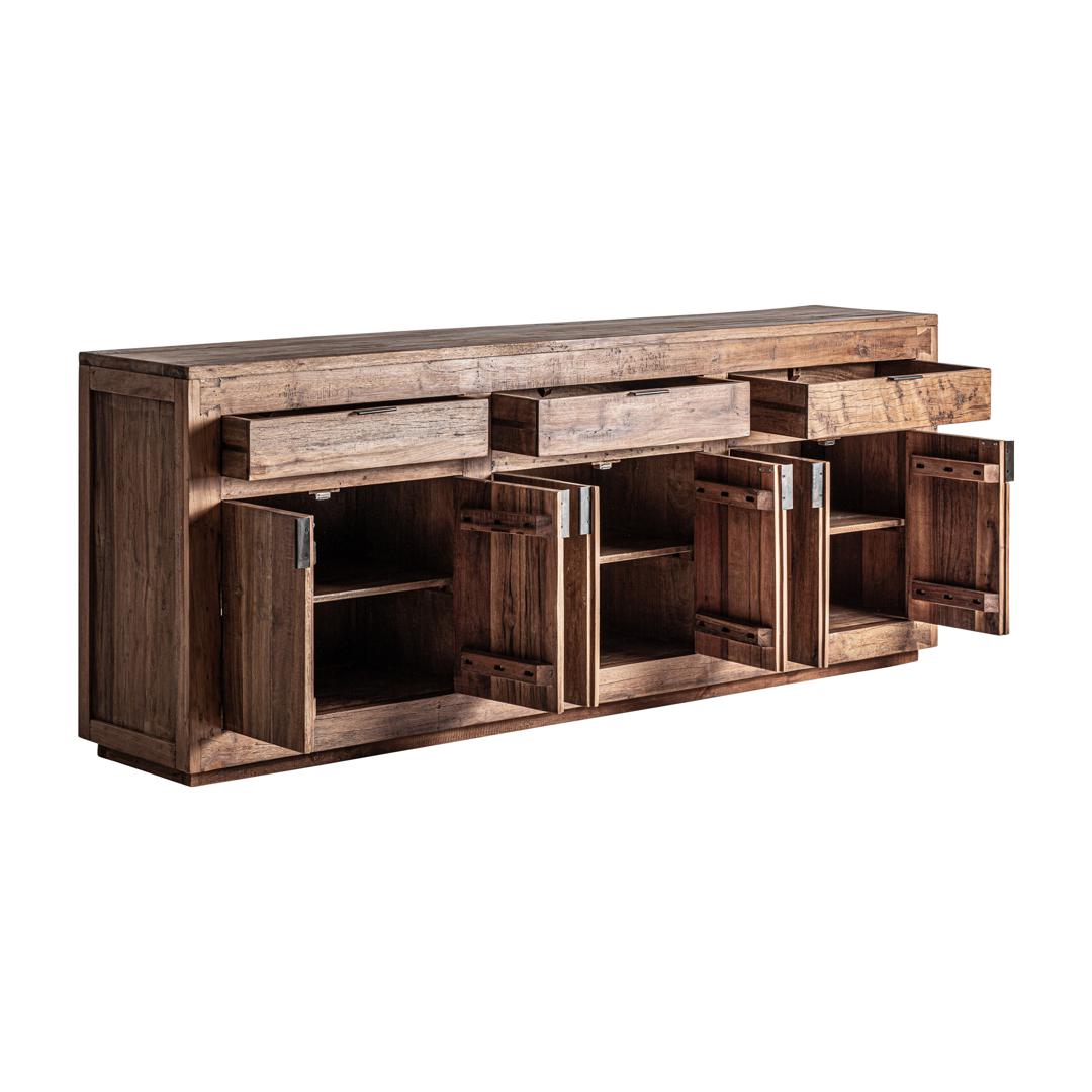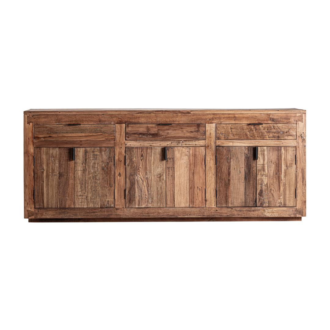 Буфет из переработанной древесины коричневого цвета в сочетании с черным железом. Ширина: 224 см, Глубина: 46 см, Высота: 90 см