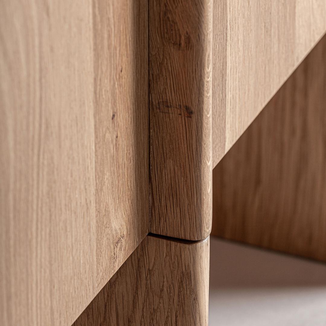 Сервант Nara в современном стиле, изготовленный из светло-коричневого дуба в сочетании с черным мрамором. Ширина: 240 см, Глубина: 62 см, Высота: 72 см