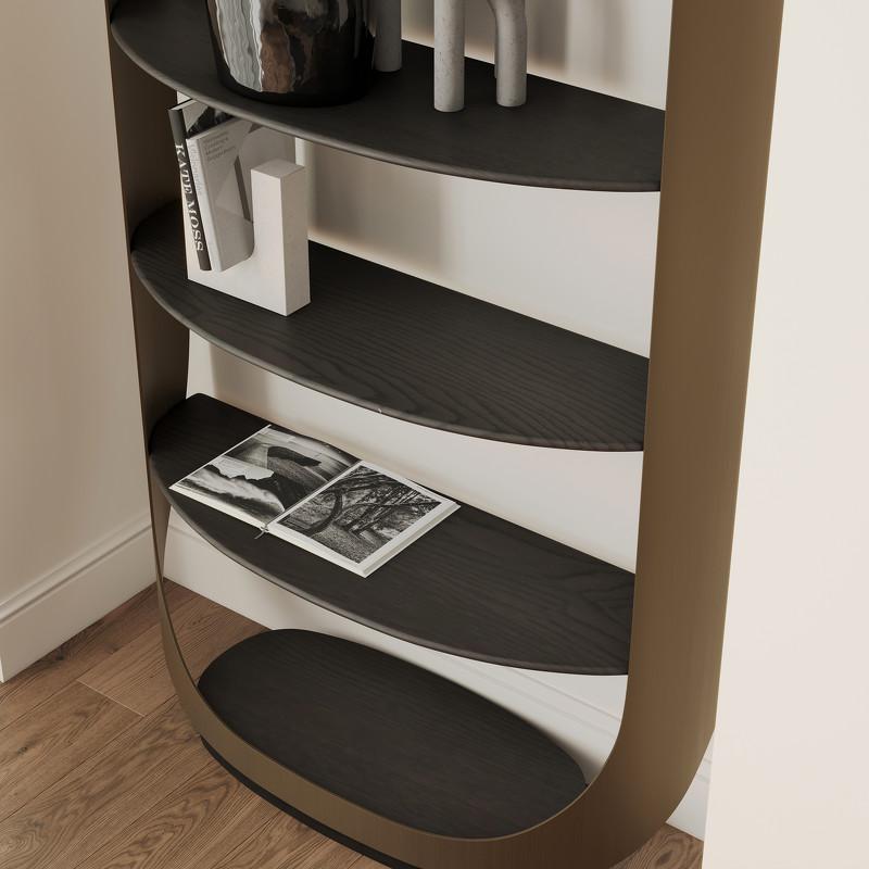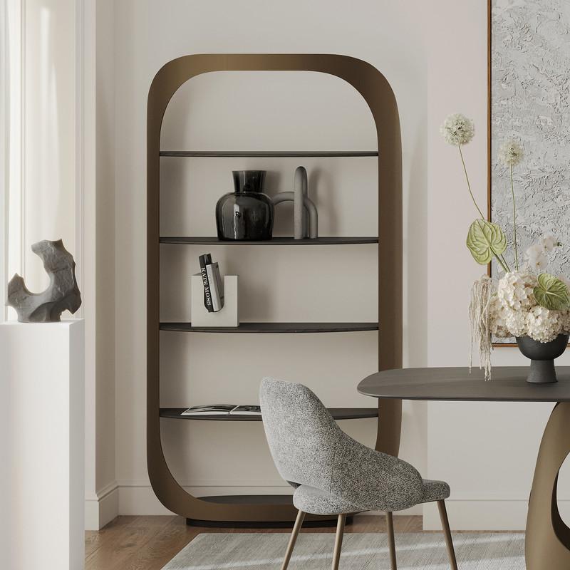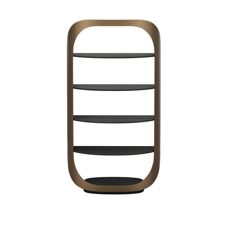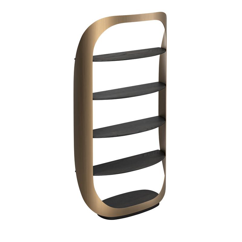 Стеллаж от итальянского бренда Fratelli Barri, выполнен в современном стиле. Модель состоит из четырех открытых пололок, где можно разместить любые памятные предметы, награды или книги. Полки выполнены из высококачественного МДФ в отделке из матового шпона вяза, каркас металлический в цвете матовая латунь. Стеллаж является частью коллекции Bitti от Fratelli Barri и отлично будет сочетаться с другими предметами коллекции. Вы можете оформить интерьер вашей квартиры или дома в едином стиле.