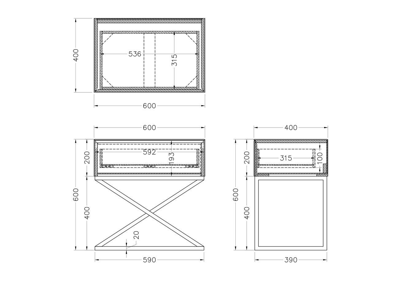 Тумбочка Garda Decor KFG090 Тумба с матовой зерк.отделкой каркас металл. 60*40*60см арт. KFG090