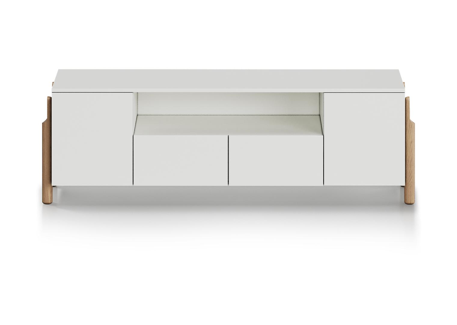 Тумба Basic под ТВ с нишей ширина 170 см Высота: 54 см Ширина: 170 см Глубина: 42 см Вес: 75 кг Материал: МДФ Каркас ящиков: ЛДСП Покрытие корпуса: RAL 9003 Ножки: дуб