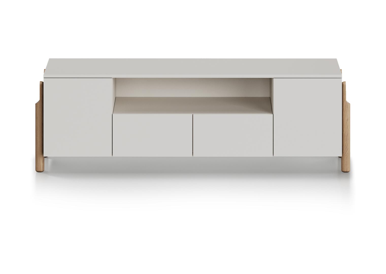 Тумба Basic под ТВ с нишей ширина 170 см Высота: 54 см Ширина: 170 см Глубина: 42 см Вес: 75 кг Материал: МДФ Каркас ящиков: ЛДСП Покрытие корпуса: эмаль NCS S 1502-Y50R Ножки: дуб