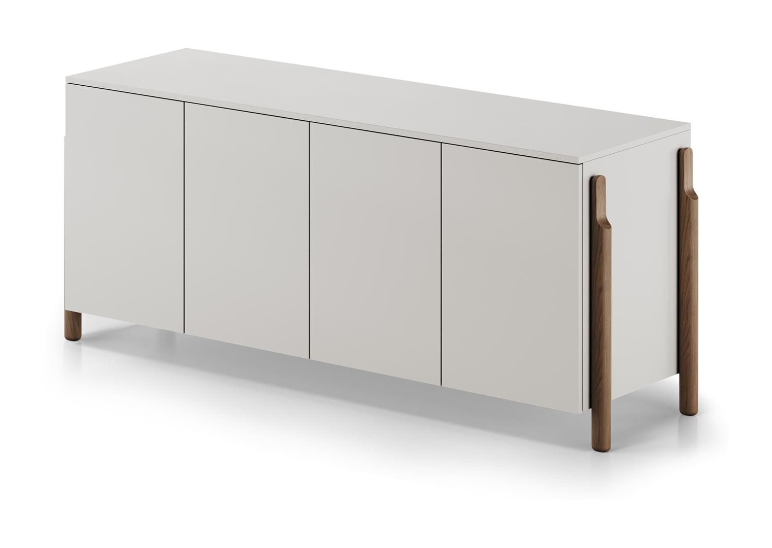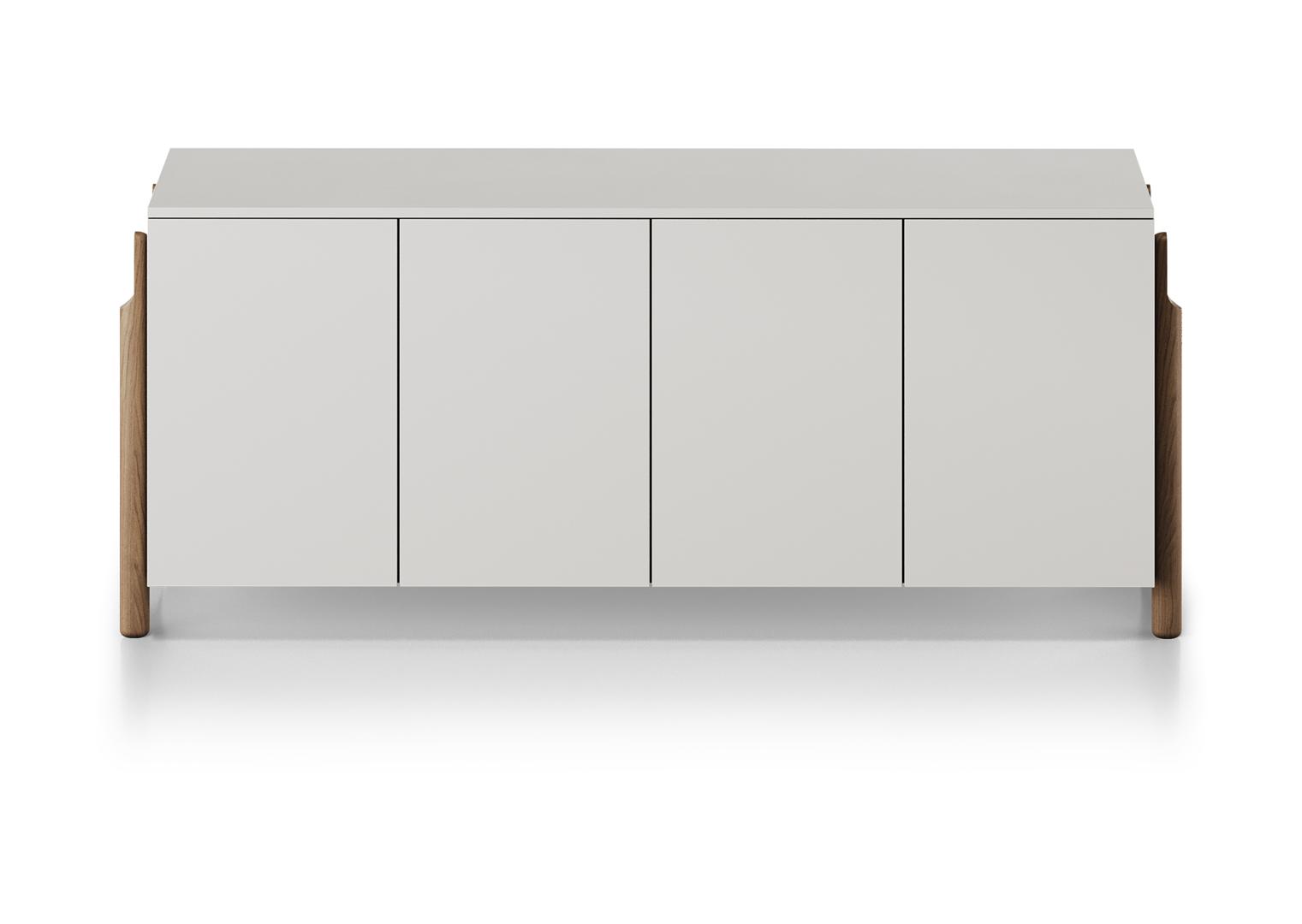 Тумба Basic 4 двери ширина 170 см Высота: 70 см Ширина: 170 см Глубина: 49 см Вес: 80 кг Материал: MДФ Каркас ящиков: ЛДСП Покрытие корпуса: эмаль NCS S 1502-Y50R Ножки: дуб