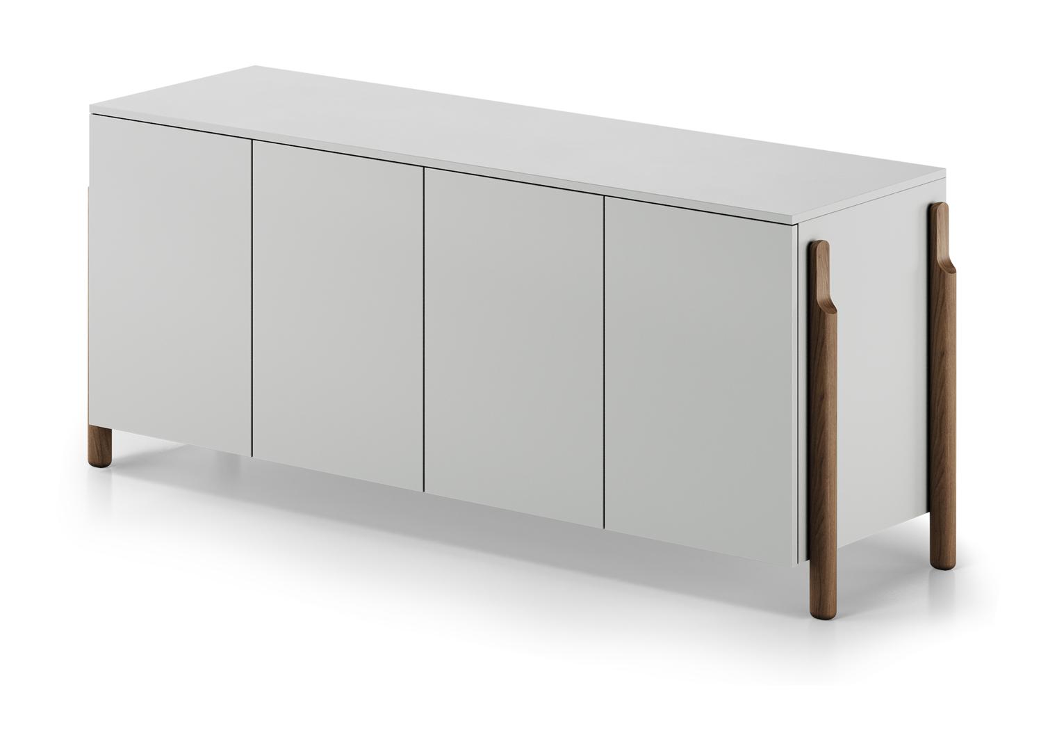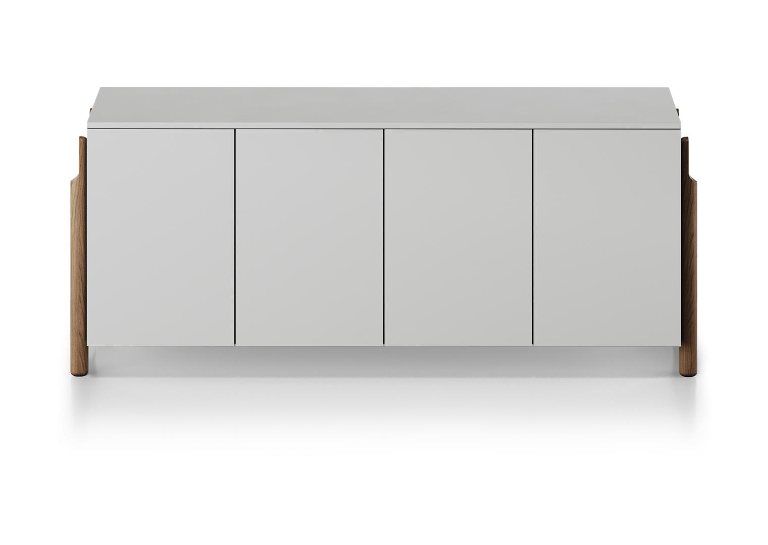 Тумба Basic 4 двери ширина 170 см Высота: 70 см Ширина: 170 см Глубина: 49 см Вес: 80 кг Материал: МДФ Каркас ящиков: ЛДСП Покрытие корпуса: эмаль RAL 7035 Ножки: дуб