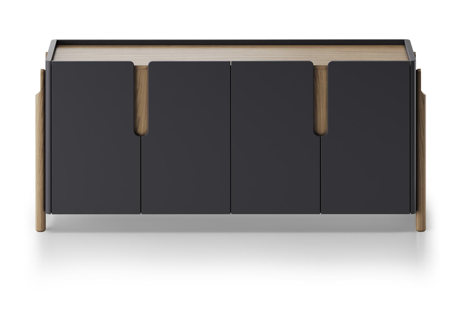 Комод Basic 4 двери ширина 180 см Высота: 80 см Ширина: 180 см Глубина: 42 см Вес: 80 кг Материал: МДФ Покрытие корпуса: эмаль RAL 9005 Ножки: дуб