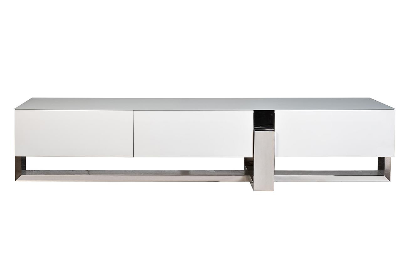 description-full - Эта тумба под телевизор — квинтэссенция архитектурной строгости и лаконичной эстетики. Глянцевая поверхность в дуэте с металлическим основанием формирует образ, в котором читается влияние минимализма и арт-деко. Чёткая геометрия линий и чистота белого цвета визуально облегчает пространство, подчёркивая современные интерьерные решения. Такая тумба станет идеальной основой для техники в гостиной в стиле хай-тек, минимализм или нео-футуризм.
