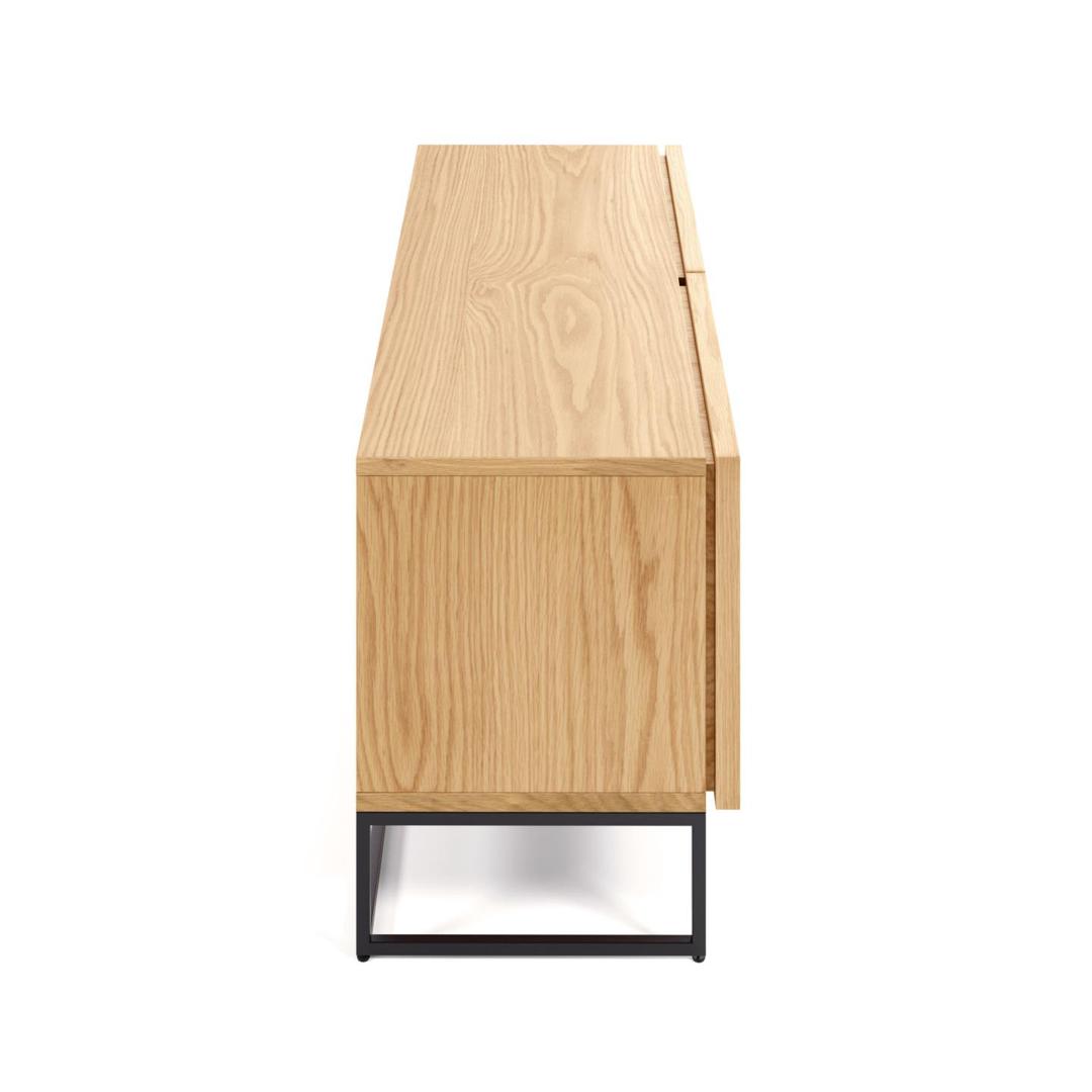 Подставка под телевизор из коллекции Taiana с дубовым шпоном и ящиками с массивной дубовой рамой, теперь со стальным каркасом для естественного индустриального стиля.