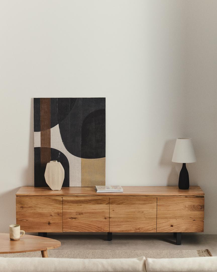 Тумба под ТВ La Forma (ех Julia Grup) Тумба под телевизор Uxue с 4 дверцами из массива акации с беленой отделкой 200 x 58 см арт. 419825
