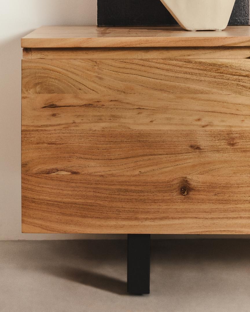 Коллекция Uxue переопределяет функциональность и стиль в любом пространстве с ее чистым, современным дизайном. Массив акации с отбеленной отделкой передает уникальное тепло и подчеркивает текстуру дерева, добавляя свет и изысканность помещению. Каждая дверца идеально интегрирована в изделие, создавая гармоничный и минималистский вид, который адаптируется к любому типу декора, от самого современного до самого классического.
