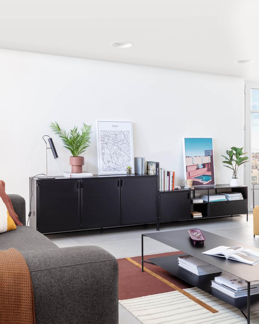Тумба под ТВ Shantay 150 x 50 cm от фабрики La Forma – стильная конструкция для поклонников промышленного дизайна. Тумба под ТВ Shantay безусловно выделяется своим брутальным дизайном, стальной структурой. Она создана для интерьеров, в которых живет прогресс и новые технологии, где вместо обтекаемых линий присутствует бескомпромиссная и четкая геометрия форм. Эта модель для решительных людей, для тех, кого не упрекнешь в консерватизме. Тумба имеет сварную конструкцию. Прямоугольный рамочный каркас поделен на четыре сектора - два закрытых и два сквозных. Слева находится ящик с дверью. Его длина 48 см. Дверь на петлях, оснащена ручкой и мягкой системой закрытия. Второй ящик выдвижной, имеет длину 68 см. Над ним находится полка высотой 18 см. Максимально допустимая на нее нагрузка – 20 кг. Удерживают конструкцию ножки в виде квадратных труб. Их высота – 9,5 см. Для защиты напольного покрытия от деформаций, на ножках есть стабилизаторы. Максимально допустимая нагрузка на поверхность тумбы – 50 кг. Размеры: длина – 150 см, глубина – 35 см, высота – 50 см. Вес – 29,8 кг. Коллекция Shantay включает также стеллаж, консоль, прикроватную тумбочку.