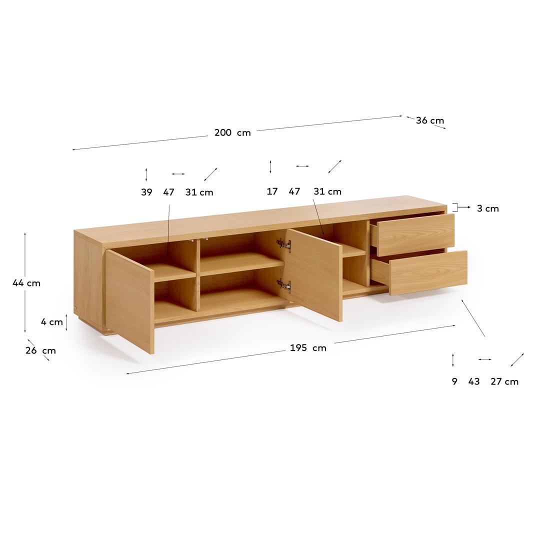 Тумба под ТВ La Forma (ех Julia Grup) Abilen Подставка для TV из дуба Abilen с 2 ящиками 200 x 43,6 см арт. 146315