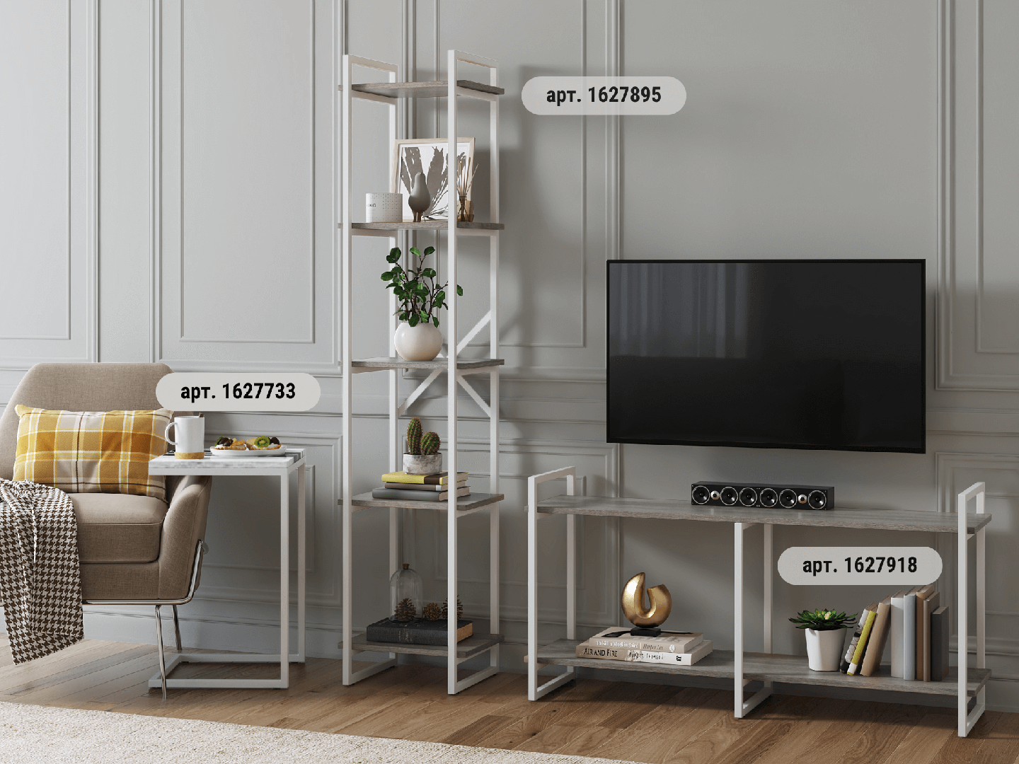 Тумба под ТВ LoftyHome ТВ-тумба Мальборк 2 Смоук с белым основанием лофт арт. 1627918