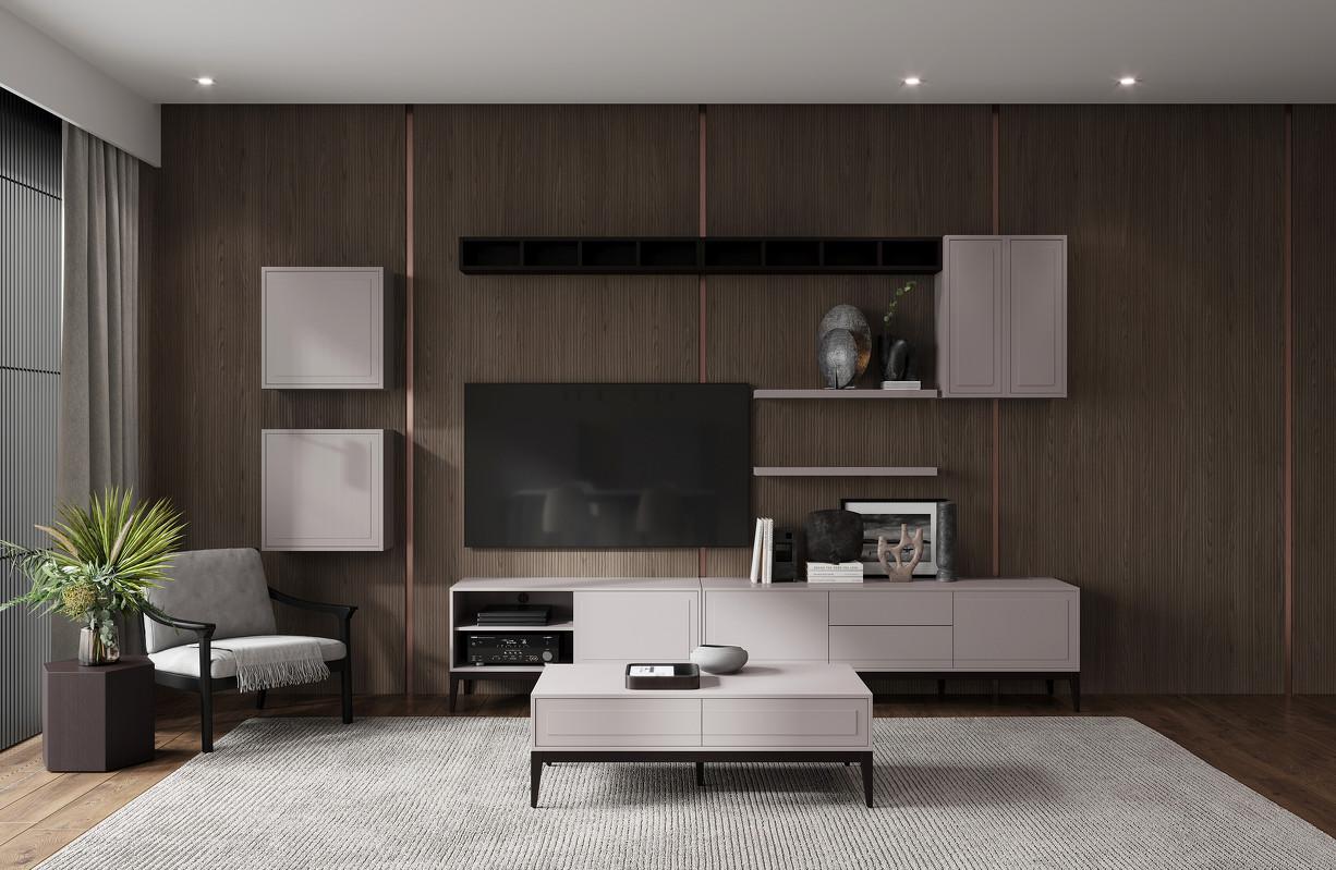 Тумба под TV на высоких ножках из коллекции Marbella от бренда MOD Interiors. Дизайнерская фрезеровка модели выглядит лаконично и стильно. Модель имеет два ящика и две дверцы. Отделка — приятный серый матовый оттенок. Фасады — 100% шпон ореха на высококачественной МДФ высокой плотности. Ножки из массива березы — темно-коричневая (почти черная) древесина с натуральным рельефом. Внутри ящики оснащены системой легкого открывания push-to-open.