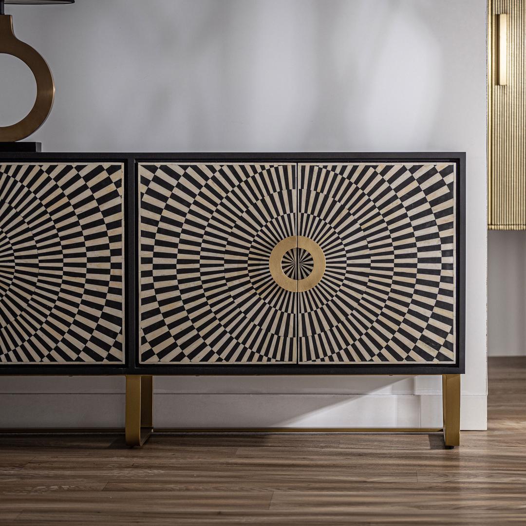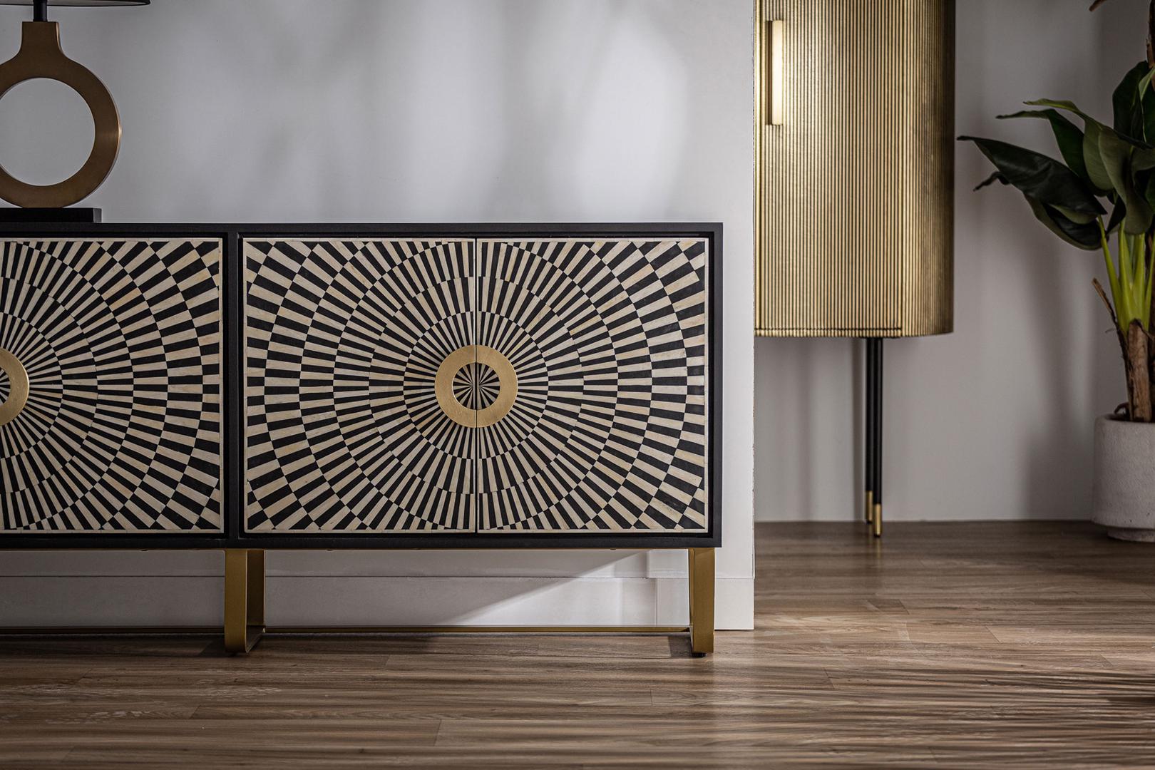 Комод Gatsby, цвет черный/белый/золотой, стиль арт-деко. Изготовлен из железа в сочетании с костью.