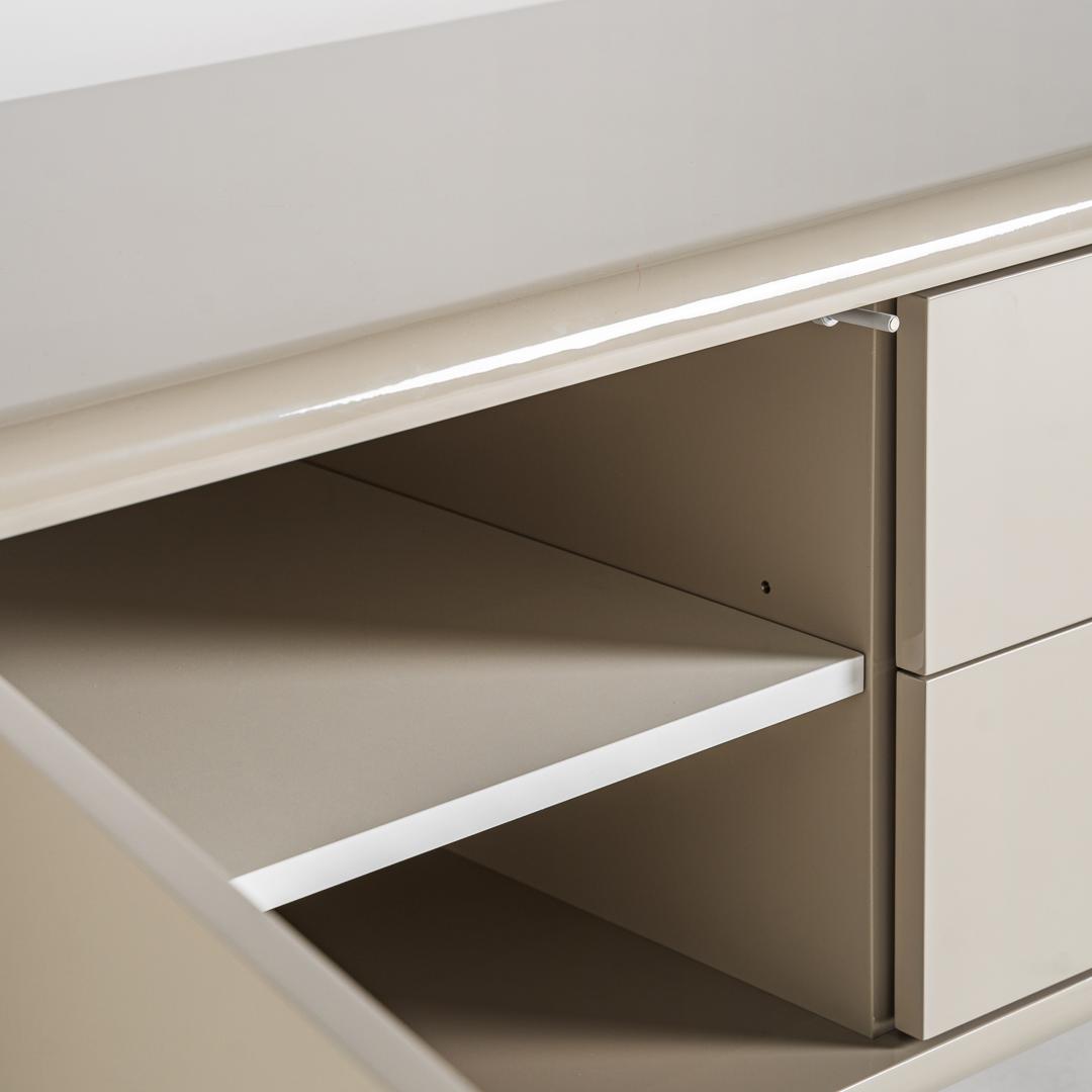 Тумба под телевизор Zorbig в современном стиле, изготовлена из серого дерева ДМ в сочетании с меламином.