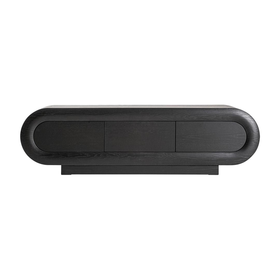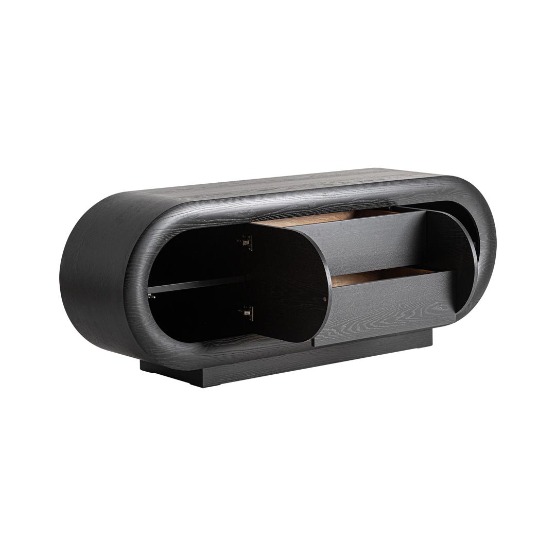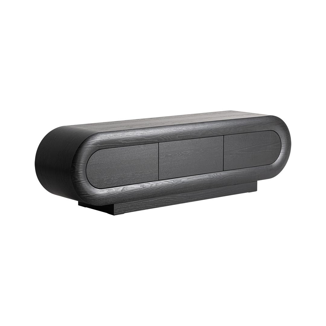 Тумба под телевизор Chamonix в современном стиле, изготовлена из дуба черного цвета. Ширина: 220 см, Глубина: 56 см, Высота: 45 см