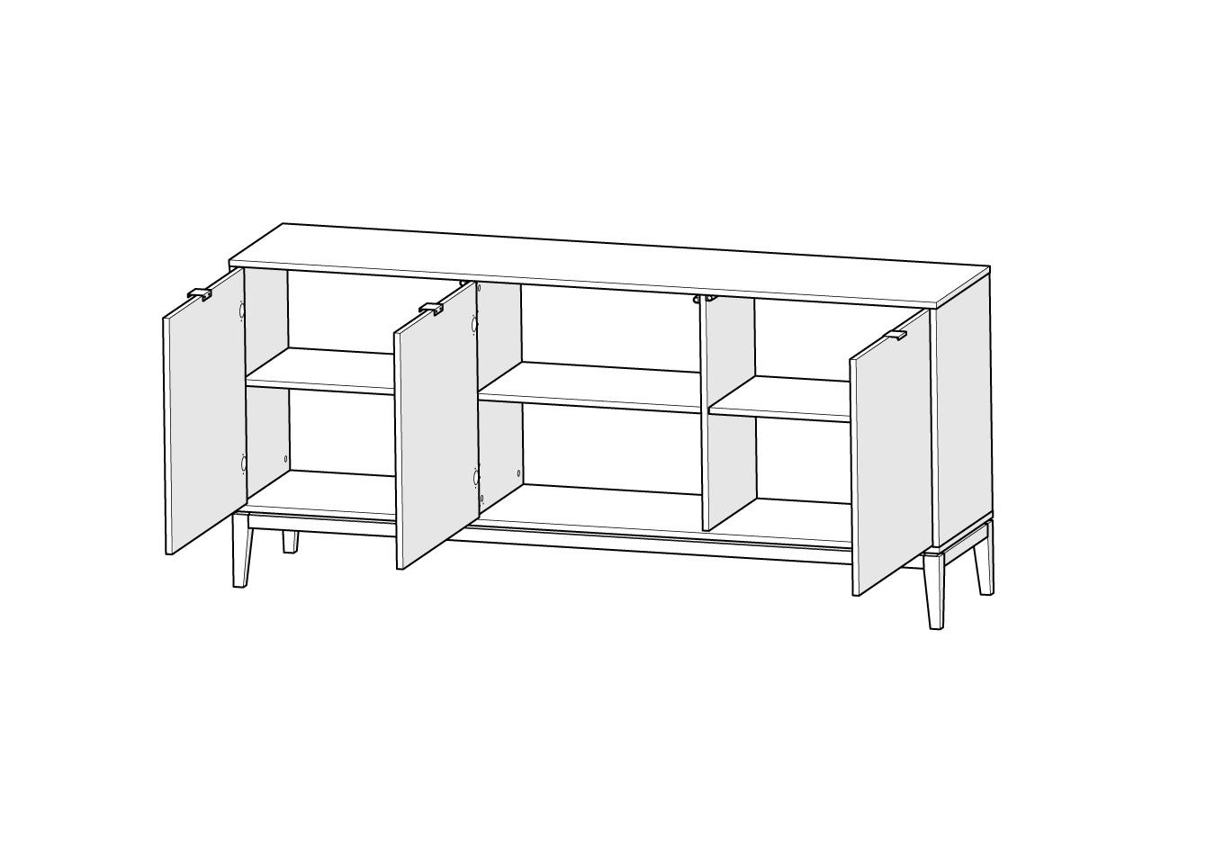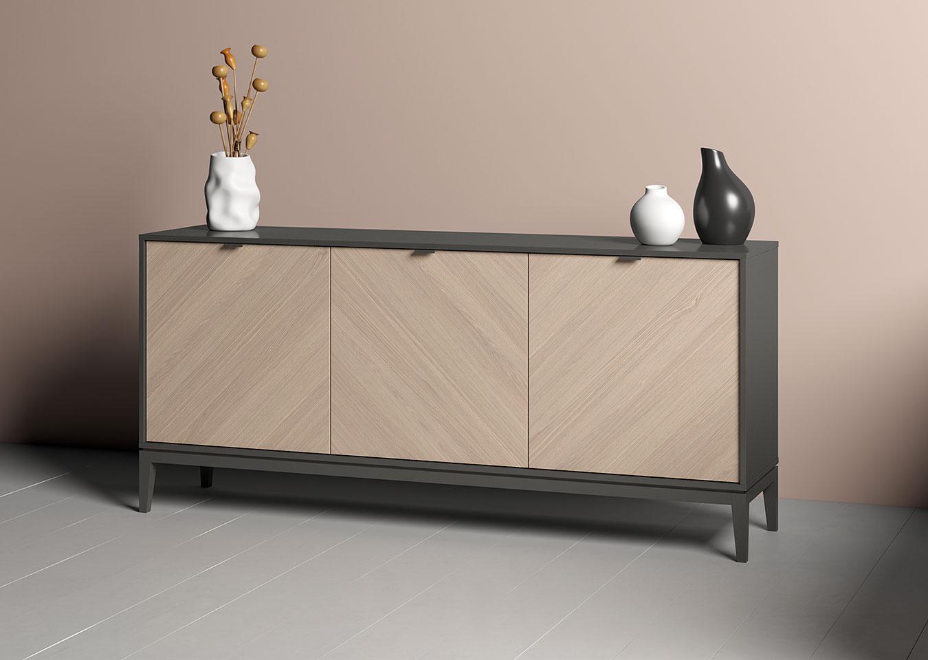 Тумба Fjord 3 двери глубина 42 см Высота: 82 см Ширина: 182 см Глубина: 42 см Основание: массива бука Корпус: МДФ под эмалью Фасады: шпон дуба