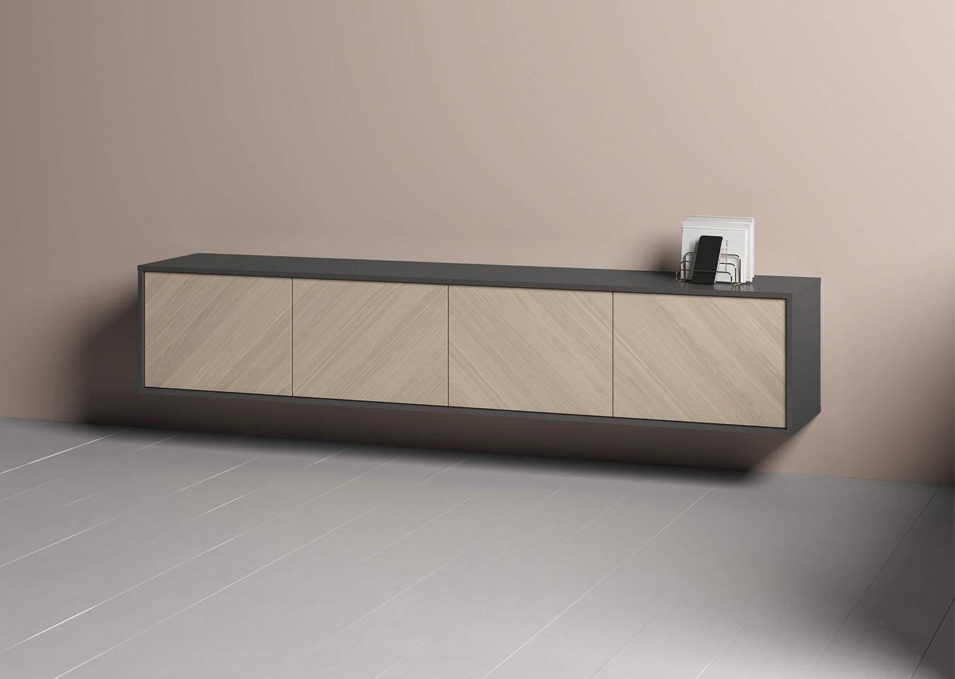 Тумба Fjord 4 двери подвесная Высота: 39,8 см Ширина: 206,4 см Глубина: 40,5 см Корпус: МДФ под эмалью Фасады: шпон дуба